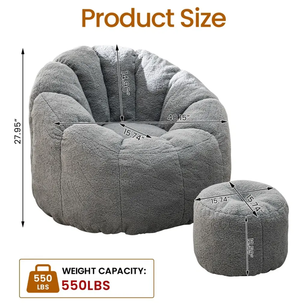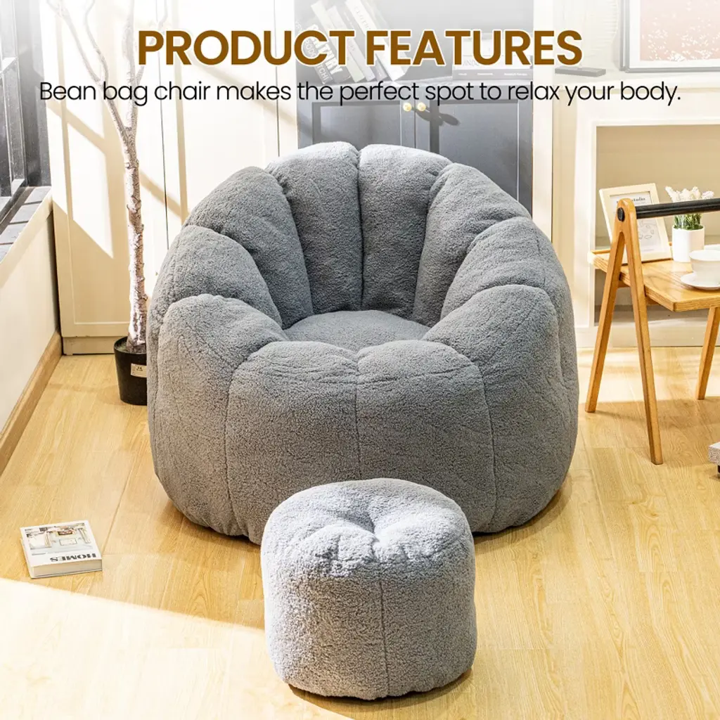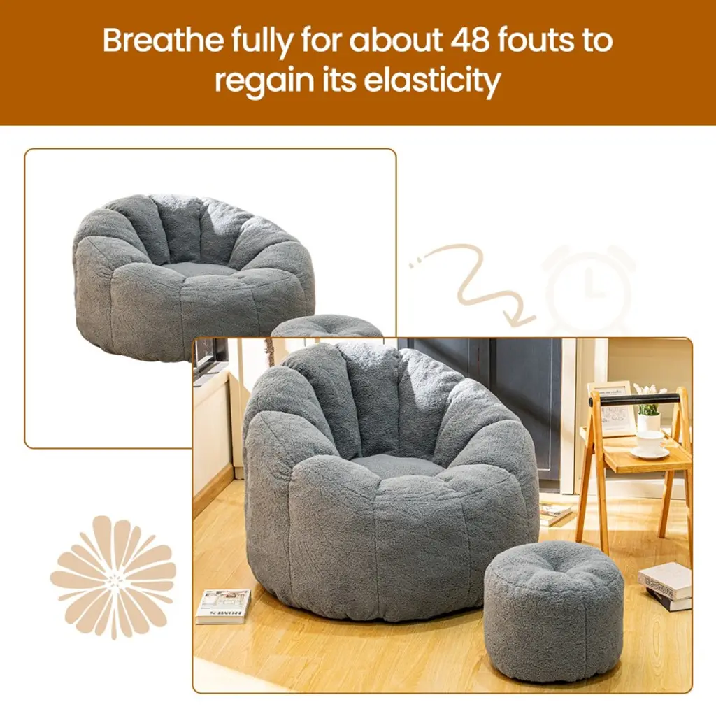 This premium flower-shaped bean bag sofa (with ottoman) blends comfort and convenience perfectly. Made of ultra-soft faux Dutch velvet and high-rebound memory foam, it's durable, eco-friendly, and keeps its shape long-term. Its ergonomic design¡ªflower backrest, large armrests, plus an ottoman¡ªsupports your body and legs for ultimate relaxation. No assembly needed: unbox, let it expand 24-48 hours, and enjoy it in dorms, living rooms, or bedrooms; great for all ages to read, game, or unwind.