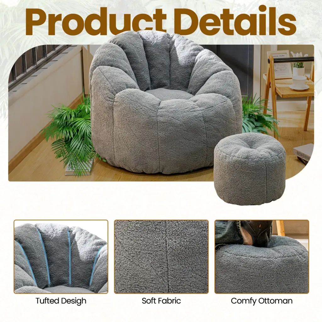 Hooseng Bean Bag Chair With Ottoman, Floral Shaped Bean Bag Sofa With Dutch Velvet Cover & Memory Foam Filler For Adults, Bedroom, Living Room, Dorm