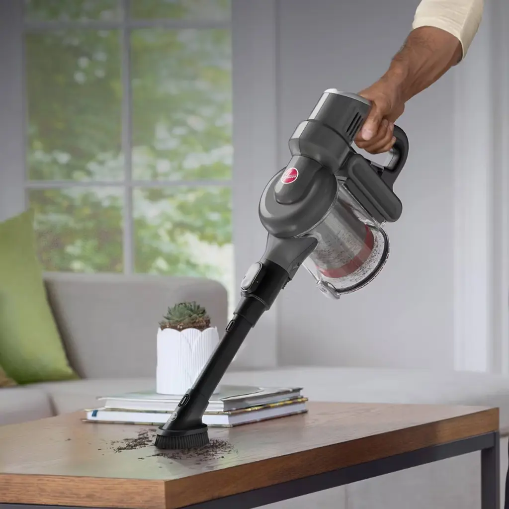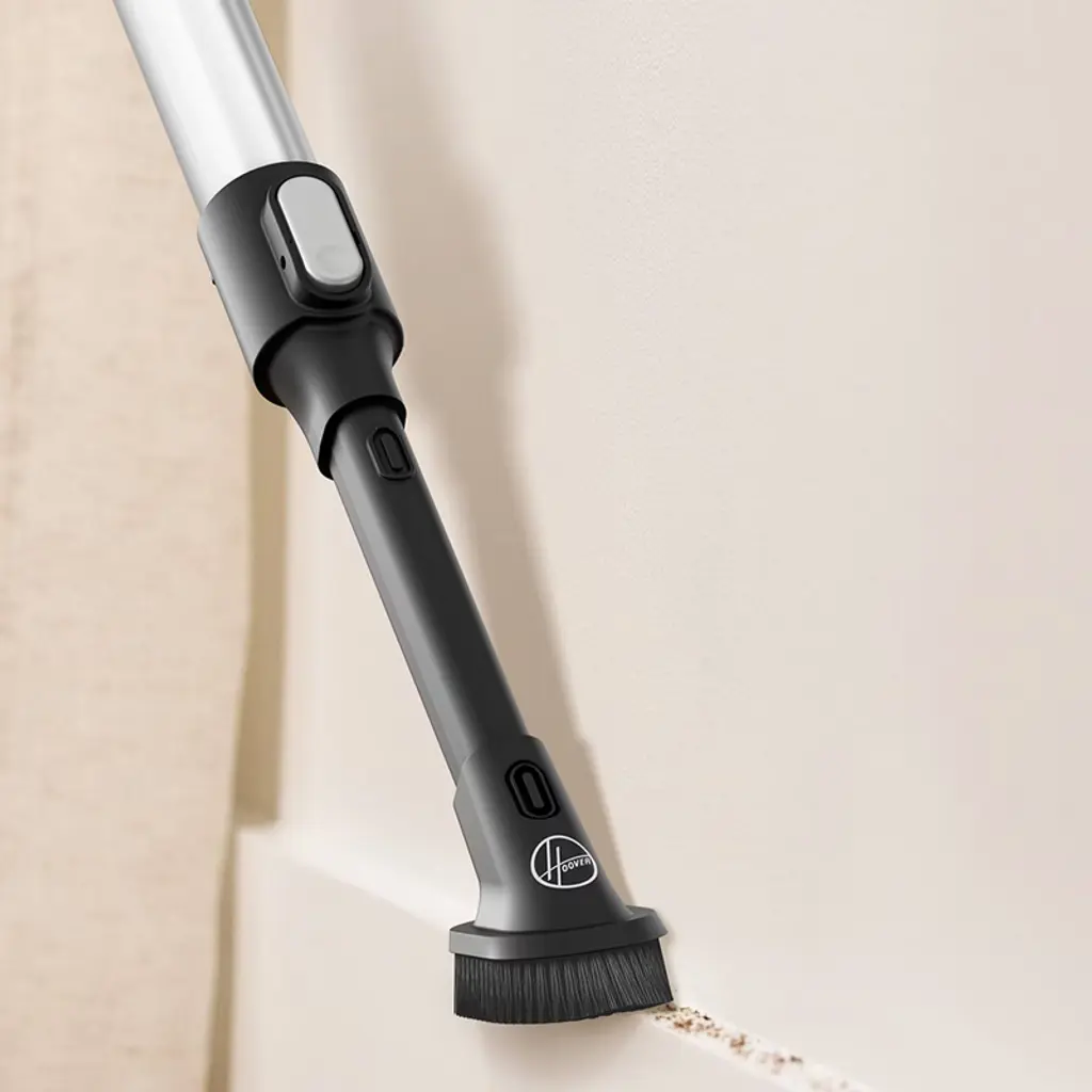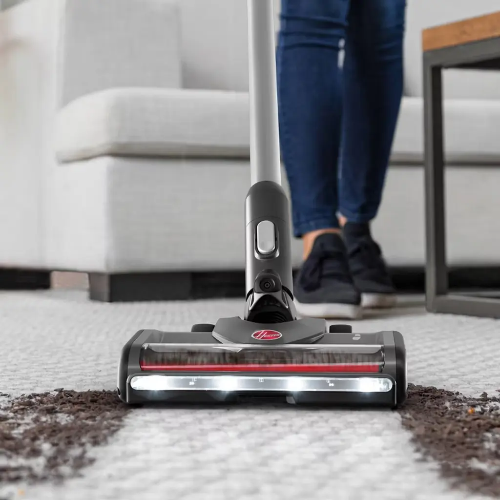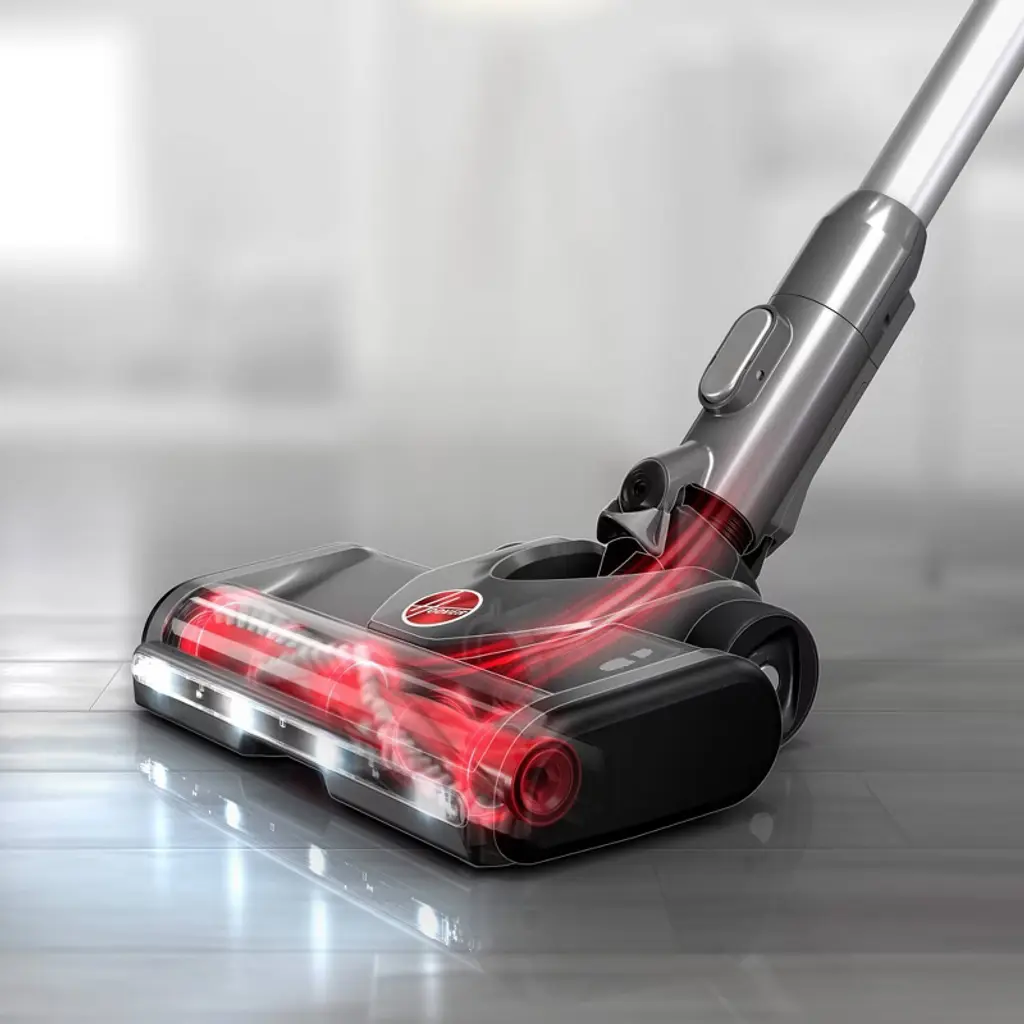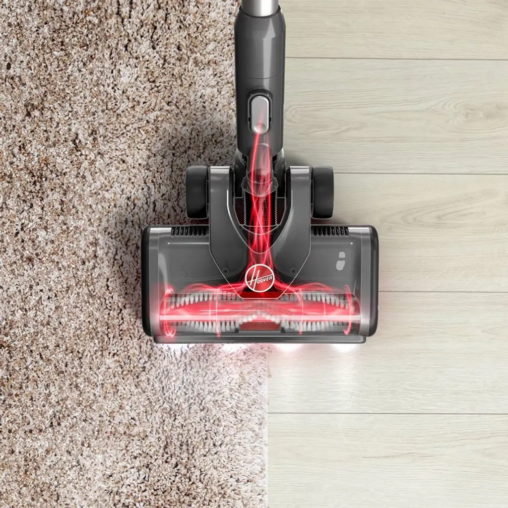The Hoover Excelerate Cordless Stick Vacuum makes cleaning up quicker and more efficient. Offering faster cleaning, this lightweight vacuum easily tackles dirt, pet hair, and embedded debris on carpets and hard floors. Its multi-surface performance ensures powerful cleaning across the carpet and hard floors in your home. Easily convert the Hoover Excelerate to a handheld vacuum clean more than just your floors, like upholstery, stairs, tight spaces, and more with the 2-in-1 Crevice Tool and Dusting Brush and the Pet Upholstery Tool. Plus, LED headlights illuminate your path for a more thorough clean. Quickly and confidently clean your whole home with the Hoover Excelerate Cordless Stick Vacuum. *not compatible with ONEPWR Battery