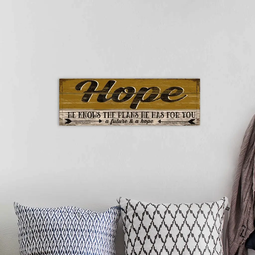 Weathered sign that reads "Hope - He knows the plans He has for you; a future and a hope."