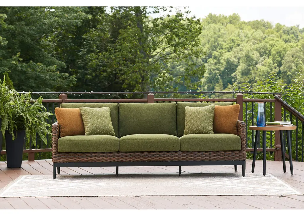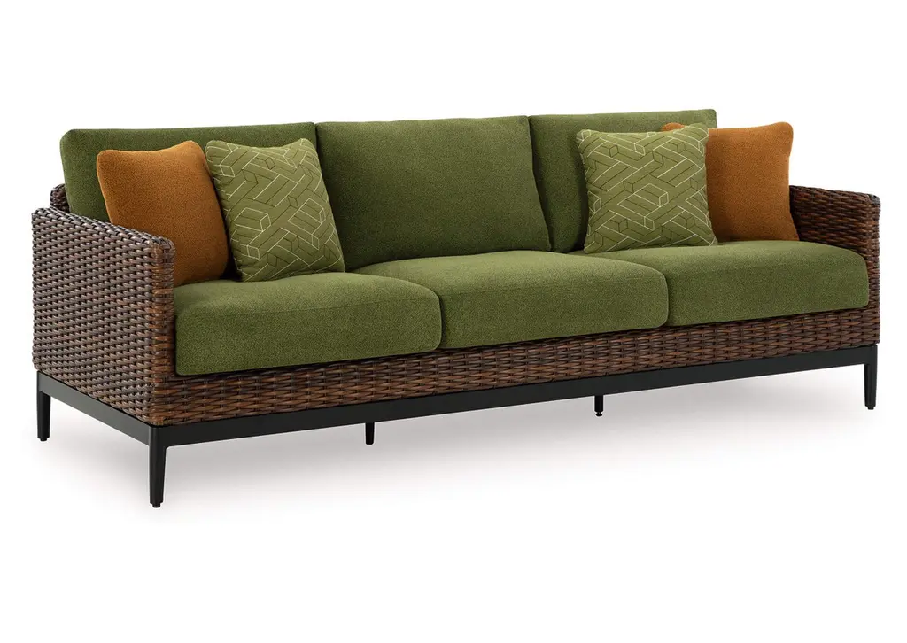 The Horizon Hall outdoor sofa recalls the aesthetics of nature to bring an inviting, high-style feel to your patio or lanai. Its Nuvella+™ performance fabric is made with enhanced UV resistance, so the chic green hue stays brighter for longer. Worried about the weather? Don't sweat it—the durable resin wicker withstands the elements from season to season. Weight 131.000 lbs. (58.95kgs.)