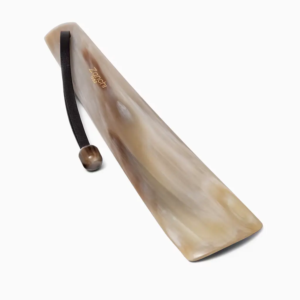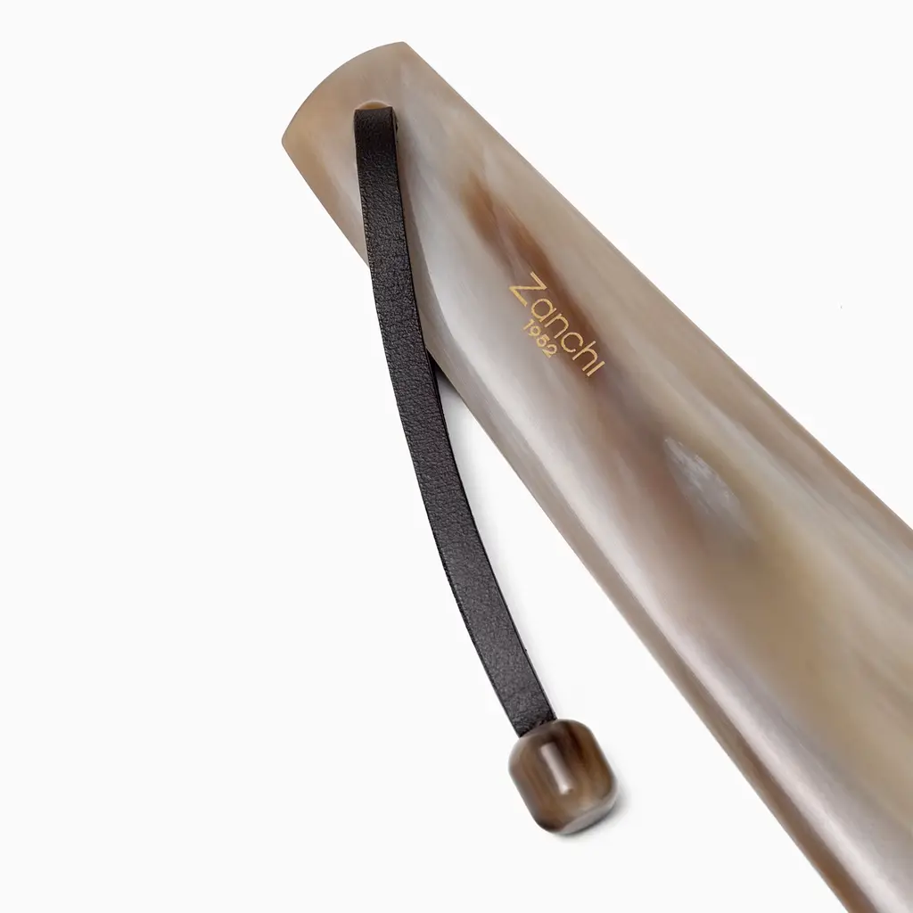 The Horn & Leather Shoe Horn, part of the Adagio Collection, exemplifies the fusion of elegance and functionality. Crafted with meticulous attention to detail, this shoe horn features a refined horn body complemented by a leather strap and a cord holder, ensuring durability and ease of use. Perfect for maintaining the shape of shoes while facilitating effortless wear, this accessory embodies a sophisticated aesthetic suitable for any routine. Designed to elevate the everyday experience, it's an essential addition to any lifestyle collection.