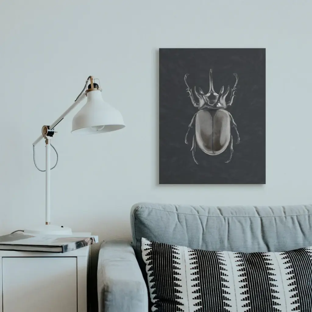 Horned Beetle Black Reflective Minimal Bug Insect Art,1pc, Each 24 X 30