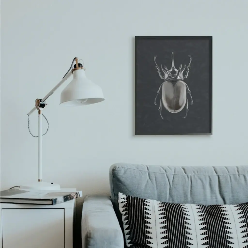 Horned Beetle Black Reflective Minimal Bug Insect Art,1pc, Each 24 X 30