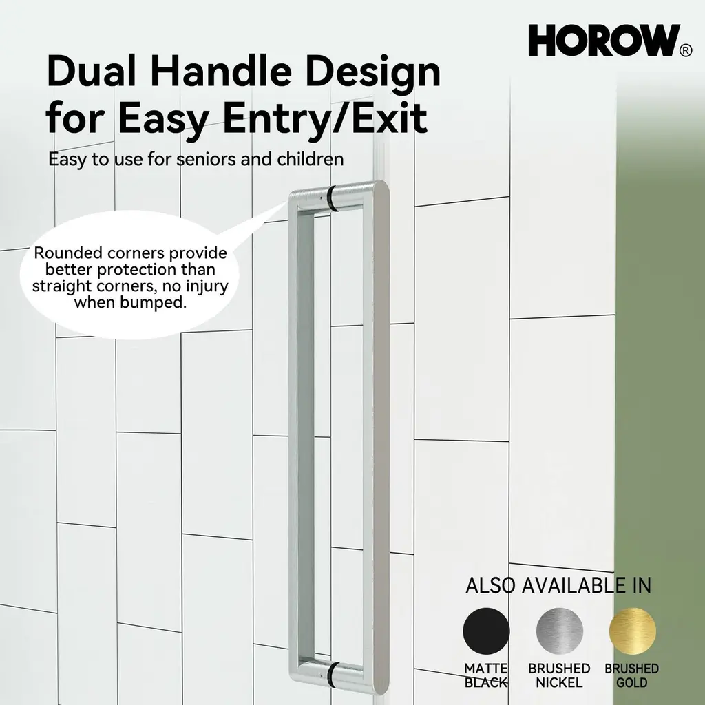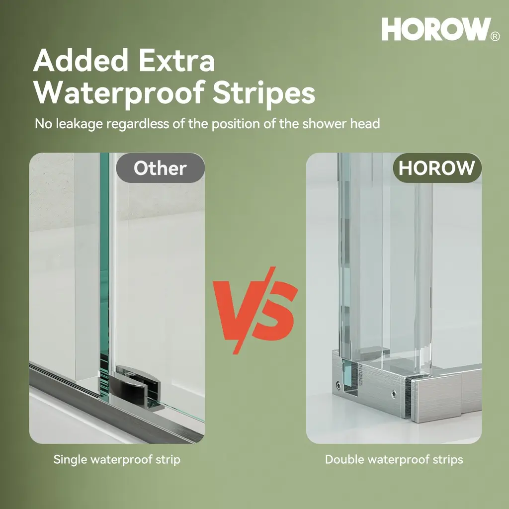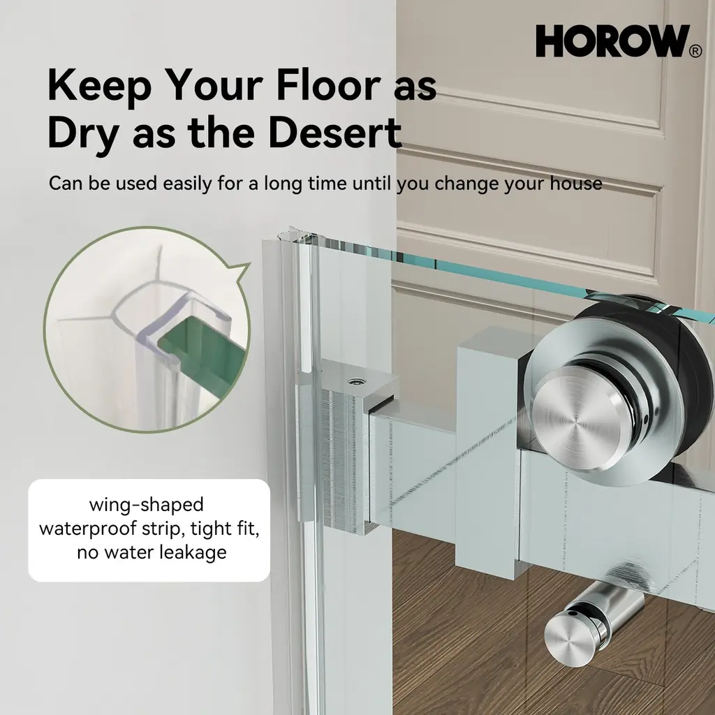 This is definitely a shower door that you will receive endless compliments from your family and friends! Not only help you achieve a comfortable shower, but also add to the elegance of your bathroom with ease. This frameless shower door, with its high light transmittance tempered glass, is able to display the style of the tiles in your bathroom. You'll love our exclusive patented design of winged water stopping adhesive strips, which will keep the exterior of your bathroom consistently clean. Having a hard time with installation? Don't worry, we provide a 3D installation video, and we are confident in our product by offering a 5-year warranty instead of 1 year for other brands. Any problem our quick response team will help you to solve it, please buy with confidence!Highlights
