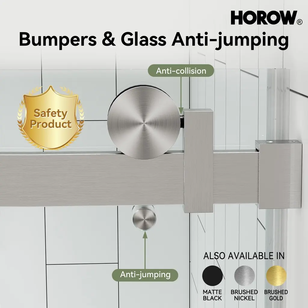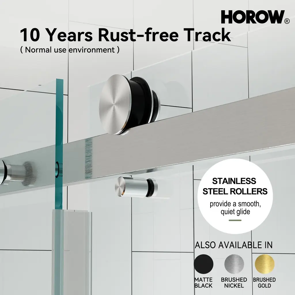Horow 56"- 60" W X 76" H Sliding Frameless Shower Door With 5/16" (8 Mm) Clear Glass - Brushed Nickel