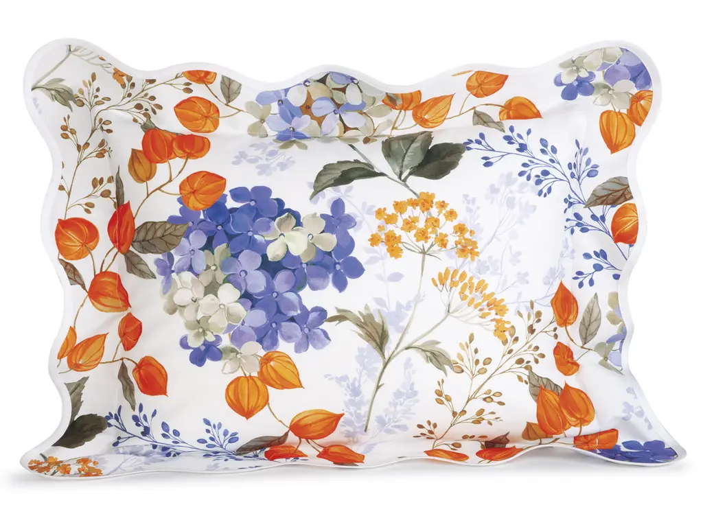 A flourishing symbol of beauty and elegance, these graceful hydrangea flowers are budding with cheery optimism while nestled amidst the soothing tones of verdant greengage and other brilliant flora. Crafted with perfect precision on lavish 300 thread count 100% Egyptian cotton sateen, this ultra-pleasing print will make any room look brighter—with an abundance of joy you can feel every day. White taped scalloped edges finish this piece for a style that’s simply too darling not to have. Made in Italy.