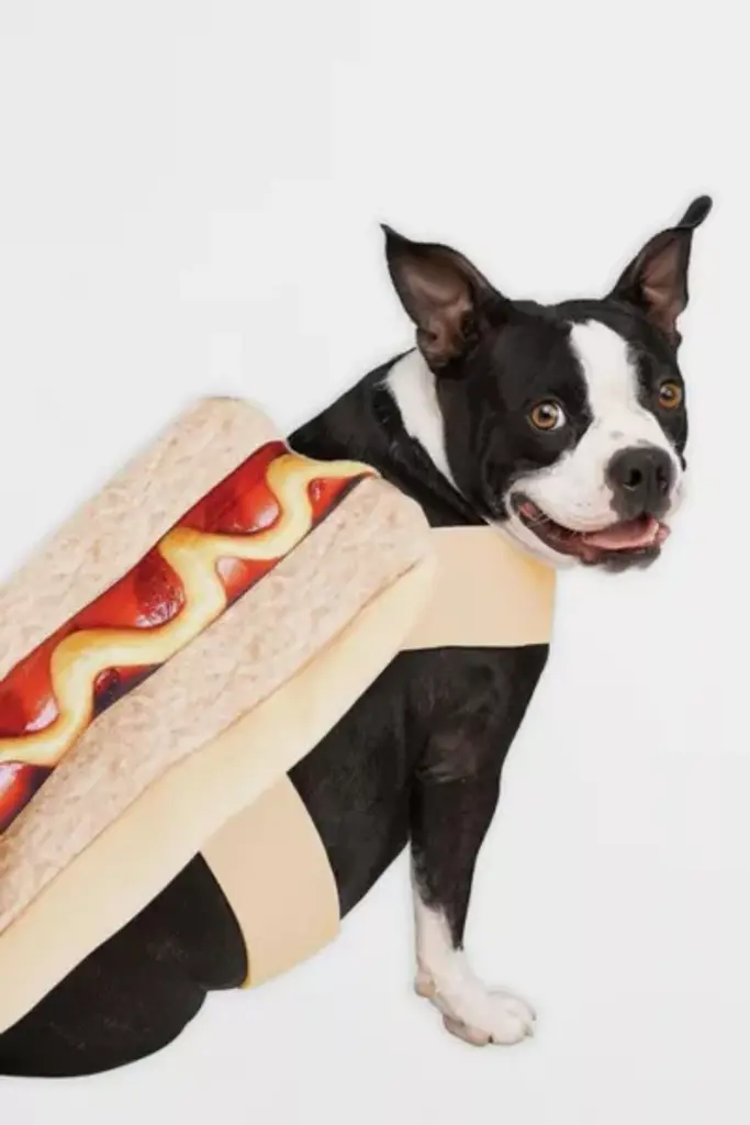 Here's one hot dawg! This adorable hot dog pet costume features a one piece suit that looks like a hot dog. Comical, comfy and cute, this costume is great for Halloween parties, costume parties, dance parties, themed parties, and dress-ups. Costume produced by Fun World, over 50 years of seasonal product fun, honesty, and integrity! Founded in 1963, Fun World produces holiday decorations and costumes.