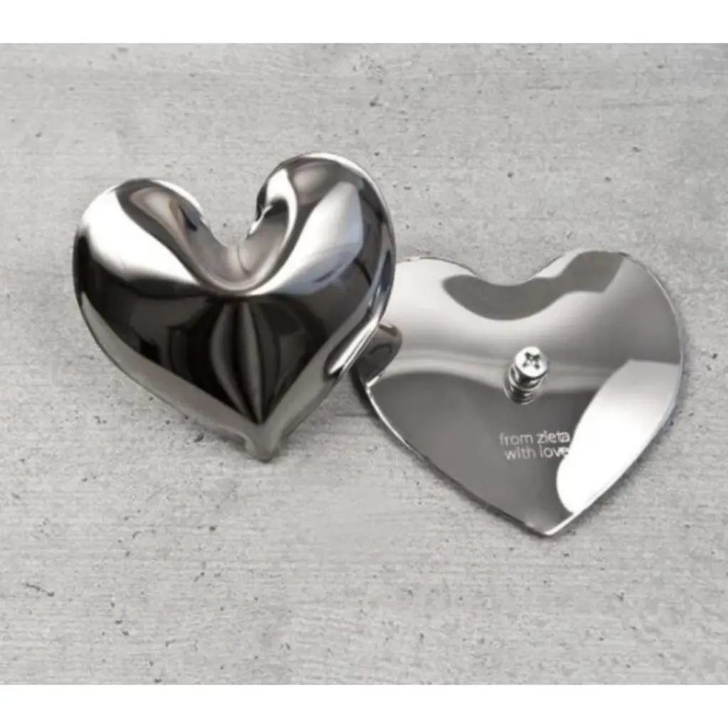 Hot Heart DIY Hanger by ZietaDimensions: D10 x H5 cm Material: Stainless steel. Also available in carbon steel.Hot Heart is a DIY small steel accessory created by seam welding two sheets of metal. The product comes flat and sealed with our secret potion locked inside. At a temperature of 200ºC, it transforms from a flat two-dimensional object gaining a bulbous tridimensional form. Just put it in the oven and it will grow!About Zieta: Zietas main goal is to deliver uniqueness and customization in design and construction while keeping the production, transport, and warehousing innovatively efficient.This is how they imagine the future world: Light, durable structures of customized applications produced on demand out of one-of-a-kind parts, yet efficiently.They use a computer-controlled production process. Customized pattern, customized form, customized function, one-of-a-kind product, and outstanding precision are what they deliver.You will find all of this philosophy reflected in the products. The research, they discover new possibilities, they play with forms and they deliver a beautiful, innovative, surprising outcome to people who love the design and who care about design development.They believe their work is a valuable contribution to the world of design not only by the unique beauty of the forms but most of all by opening ultra-innovative opportunities of forming and new paths for the world of the future. __