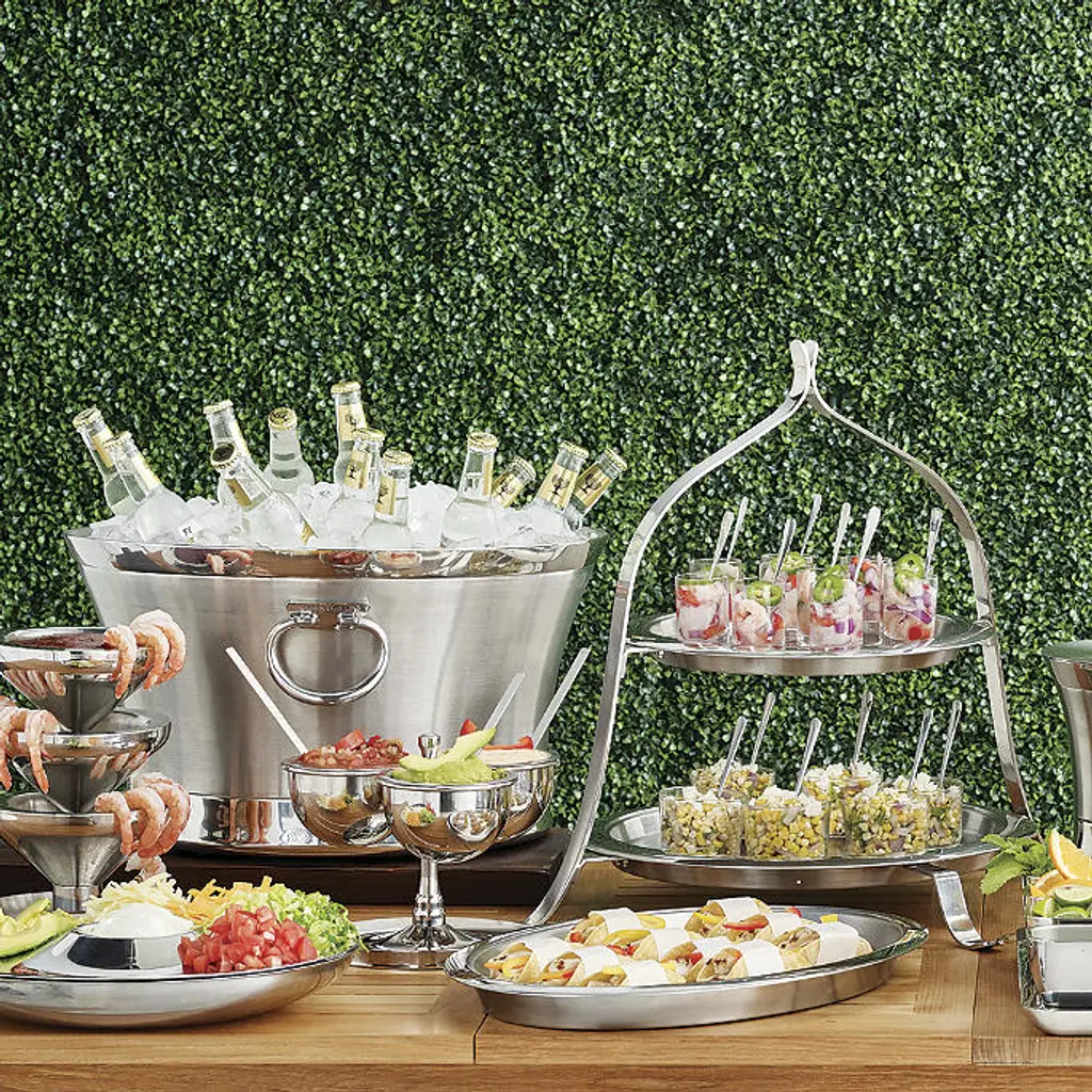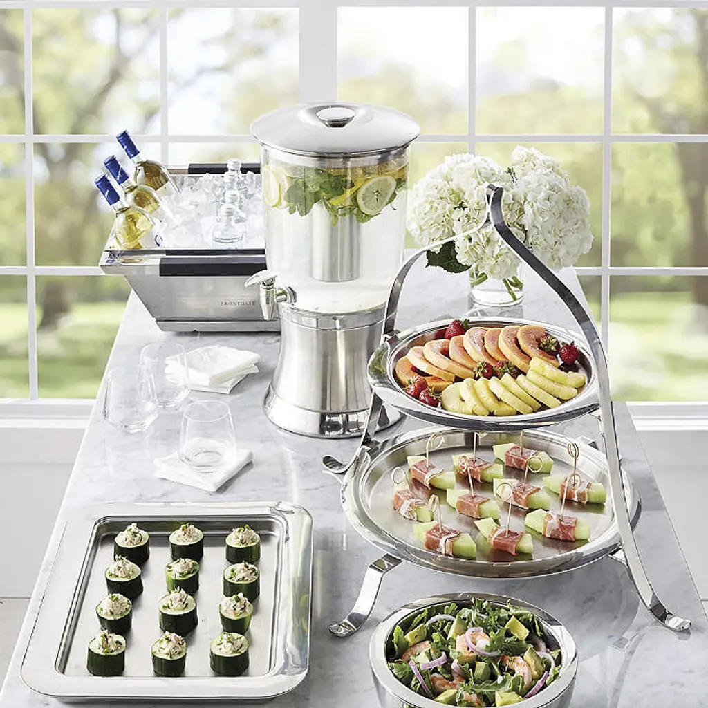 This caterer-style stand holds our 14-inch and 17-inch thermosensitive Hot/Cold Stainless Steel Serving Trays. The trays are designed to keep appetizers hot or cold for approximately two hours. Simply place them in the refrigerator or a low-temperature oven prior to use and then set them in this stand so guests can serve themselves. Perfect for everything from baked appetizers to cool and refreshing crudite. A Frontgate exclusive Made of quality stainless steel Enhances your meal’s overall presentation Hand wash only with mild soap; view care instructions (PDF format) Stand only; trays are sold separately At Frontgate, our primary focus is quality. We guarantee that every product we sell will stand up to the supreme test – our customers' satisfaction. To learn more about our policies, visit our Shipping & Processing, Returns & Exchanges and Warranty & Price Guarantee pages.