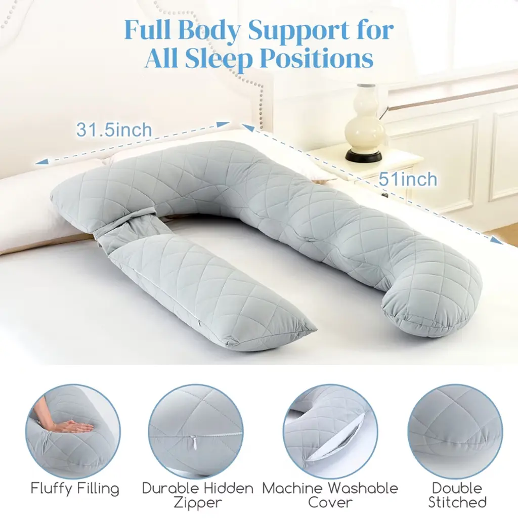 Hothugz Pregnancy Pillow - Full Body Support For Back, Belly, Hips & Legs, Removable Cover (51 Inch, Grey)