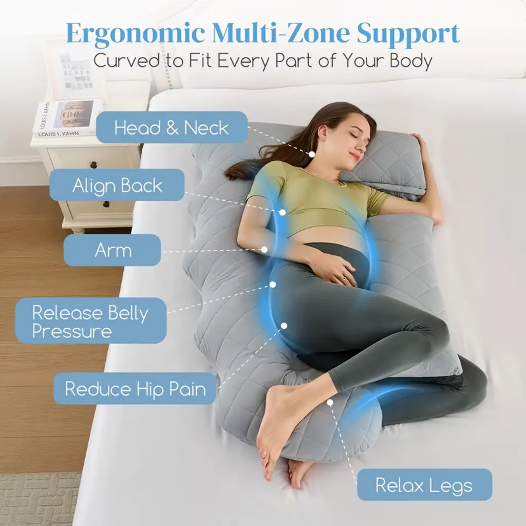 It offers full-body ergonomic support with its multi-wave design, contouring to your spine and limbs for balanced comfort in any sleep position. Wrapped in silky, breathable fabric that stays cool against sensitive skin, it’s filled with resilient polyester to relieve pressure and swelling. Ideal for pregnancy, recovery, nursing, or relaxing, this pillow makes a thoughtful and practical gift for anyone seeking all-night comfort.