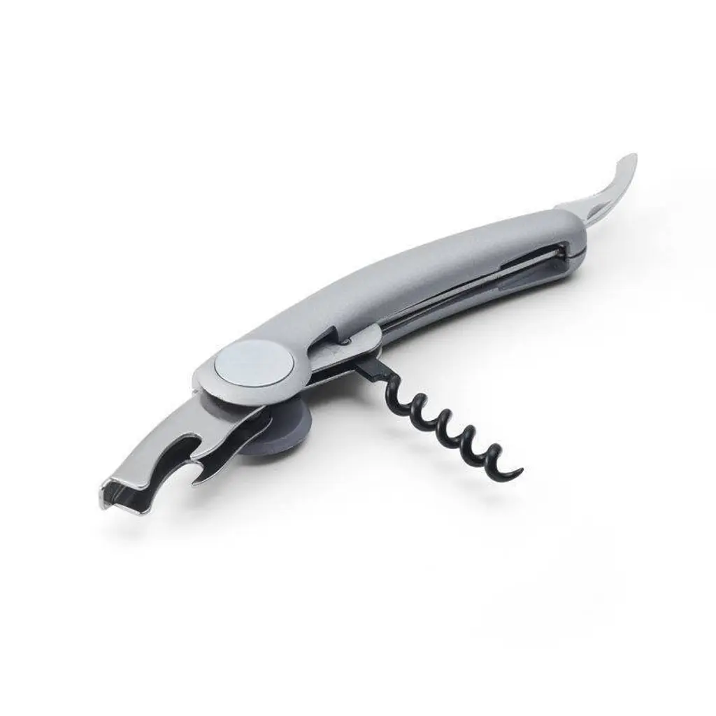 Houdini's waiters corkscrew is perfect for opening your favorite wine. The waiters corkscrew is preferred by waiters and sommeliers. Features a handy magnet which allows storage on the fridge. The corkscrew pulls all cork types with ease. Built-in foil cutter removes foil cap. Easy to carry, ideal for travel. Cheers to that!