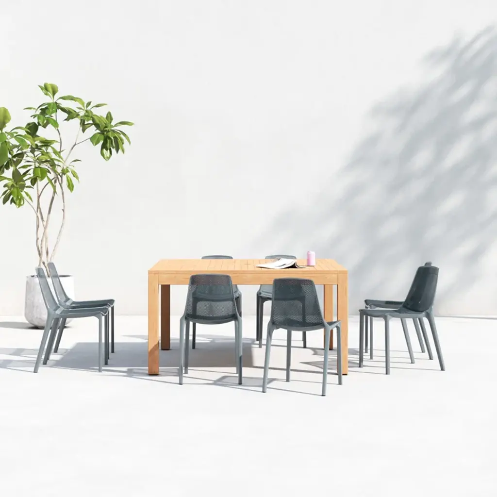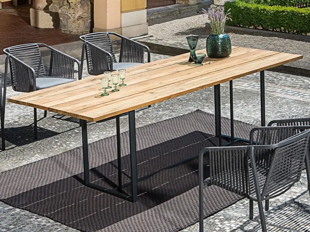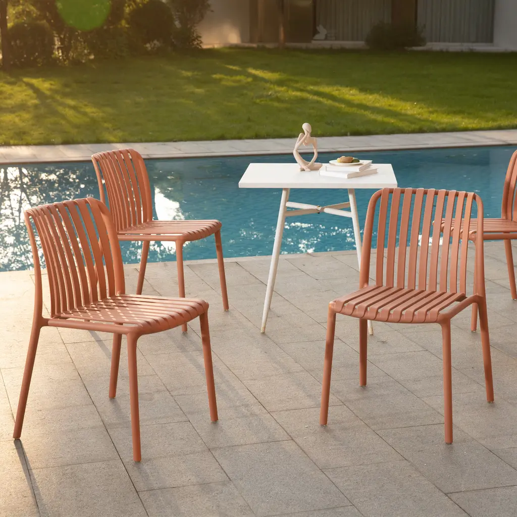 The Reclips Bistro Set is the perfect addition to your outdoor living space. Constructed of metal and recycled plastic lamellas, it is airy and comfortable.
