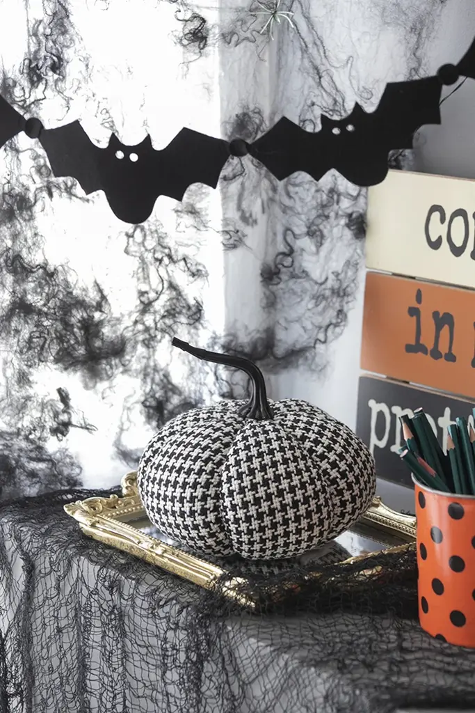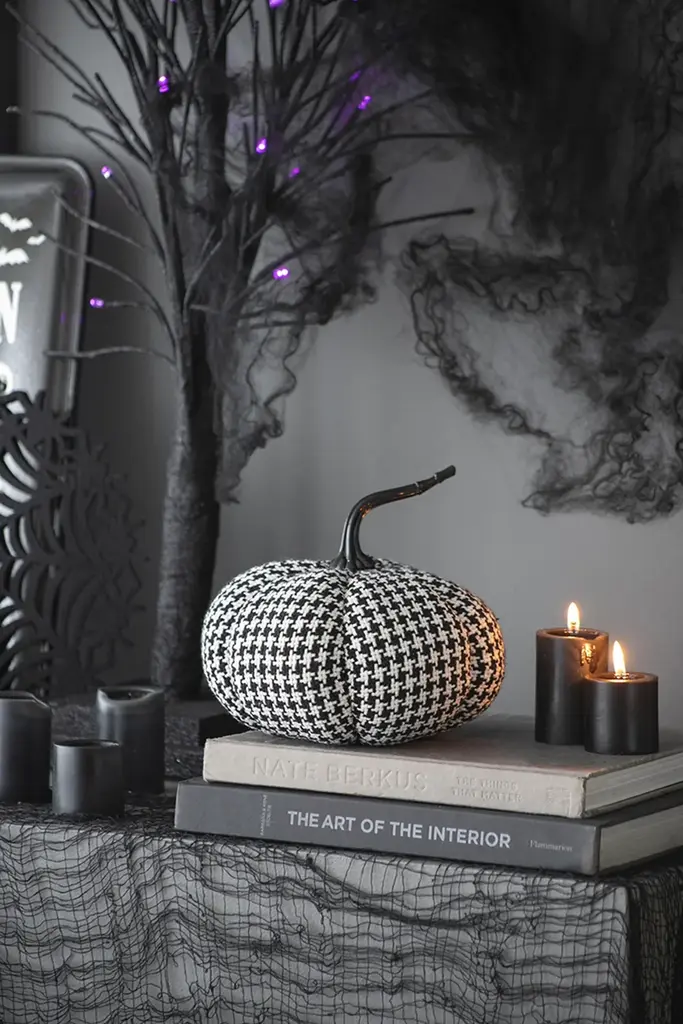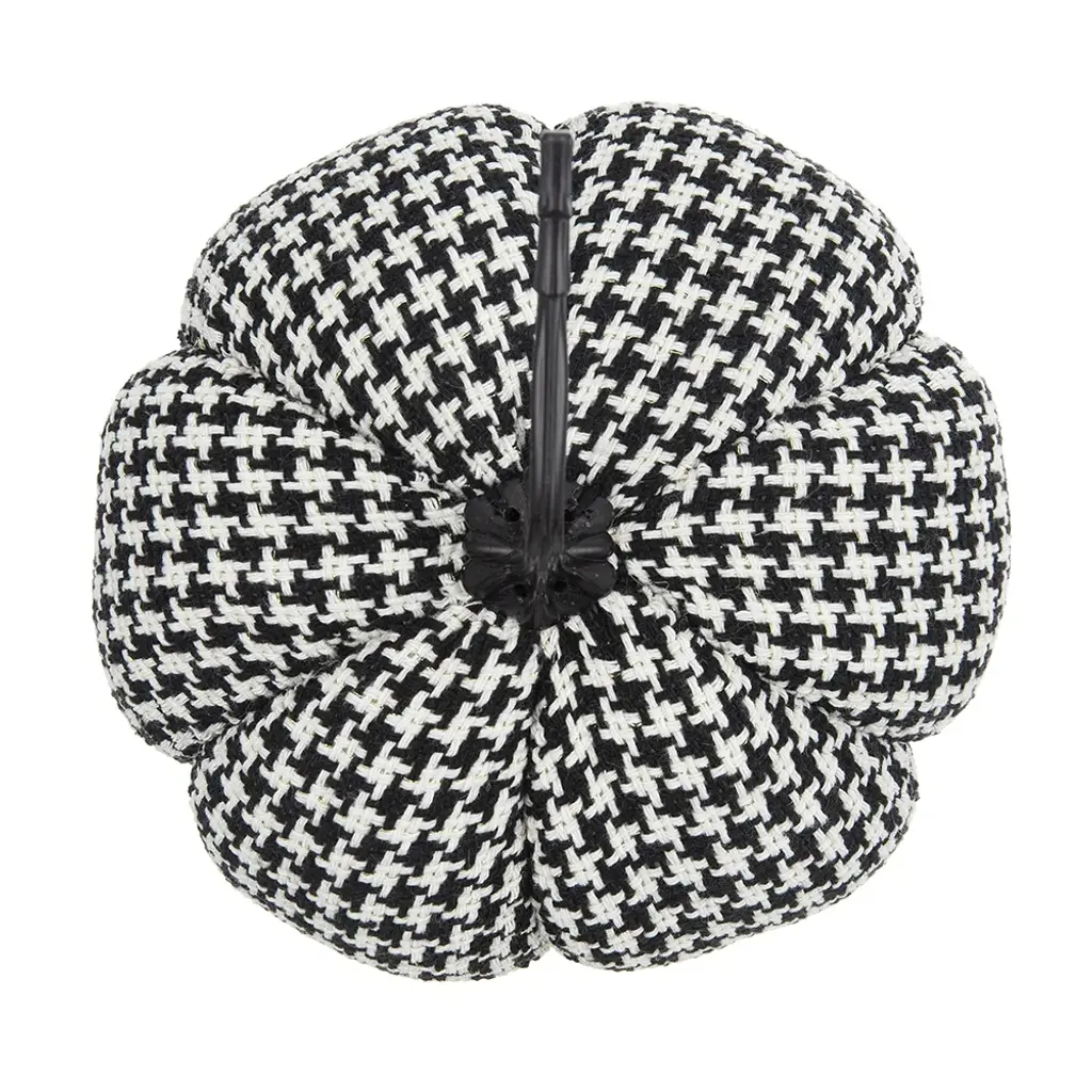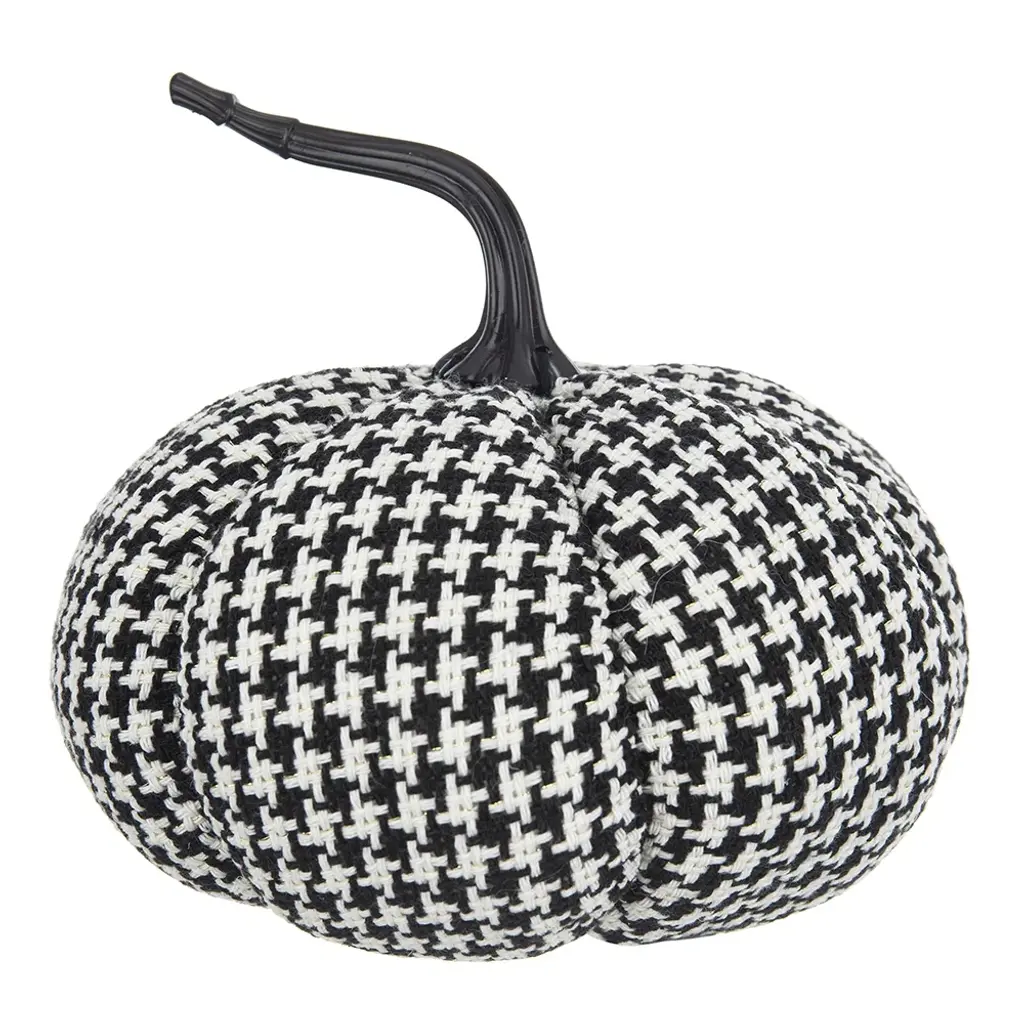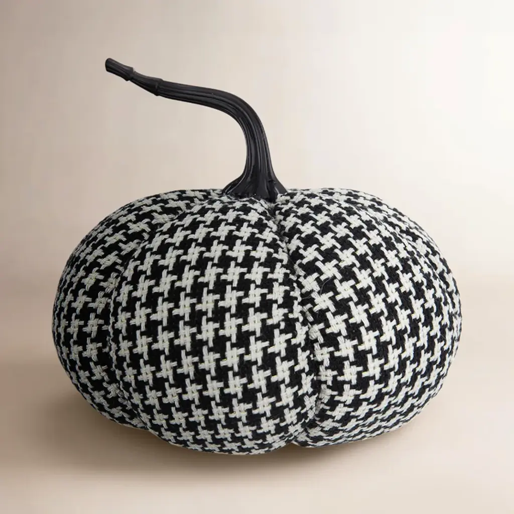 A cool rustic quality for the modern home, this fabric pumpkin features a fabric stem for a homespun aesthetic. Made from white and black fabric with a knit Plaid motif, this pumpkin touches on the kind of farmhouse style that makes autumn a true delight. It's a must have for living rooms and dining rooms. Little upgrade can take your holiday atmosphere into next level. It can well fit your indoor space, just put it anywhere in your house to add more festive vibe.