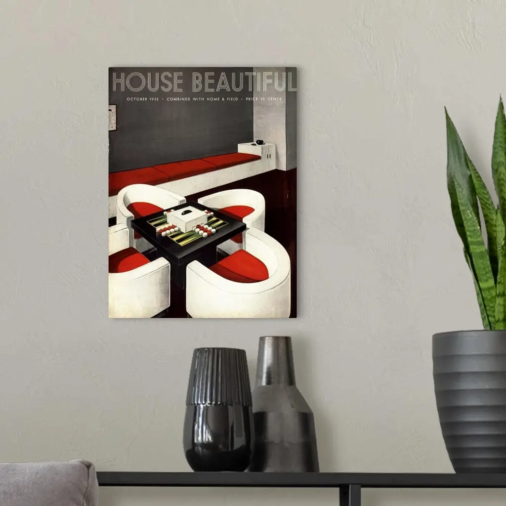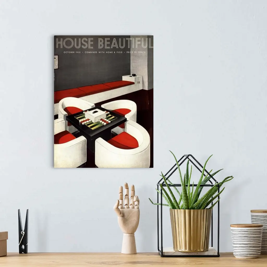 House Beautiful.1930s.USA.furniture backgammon board games magazines interiors...