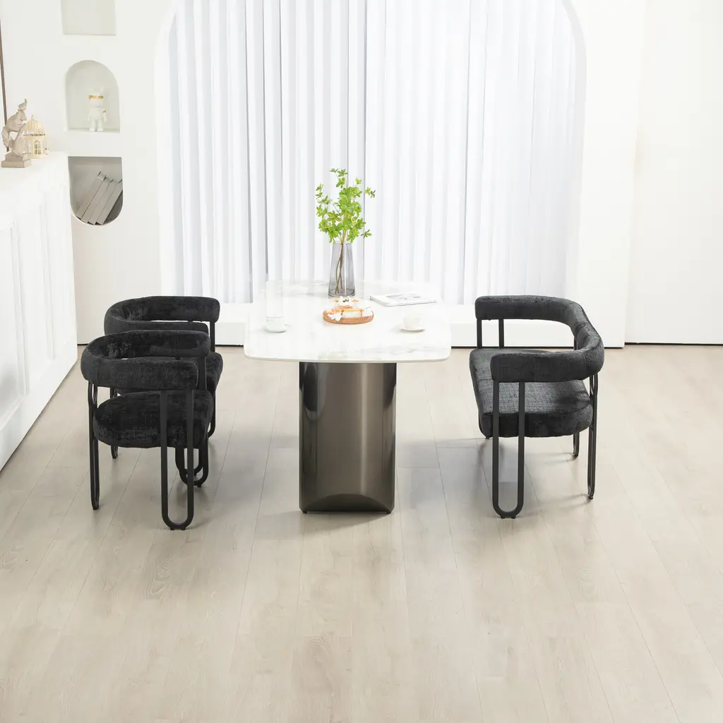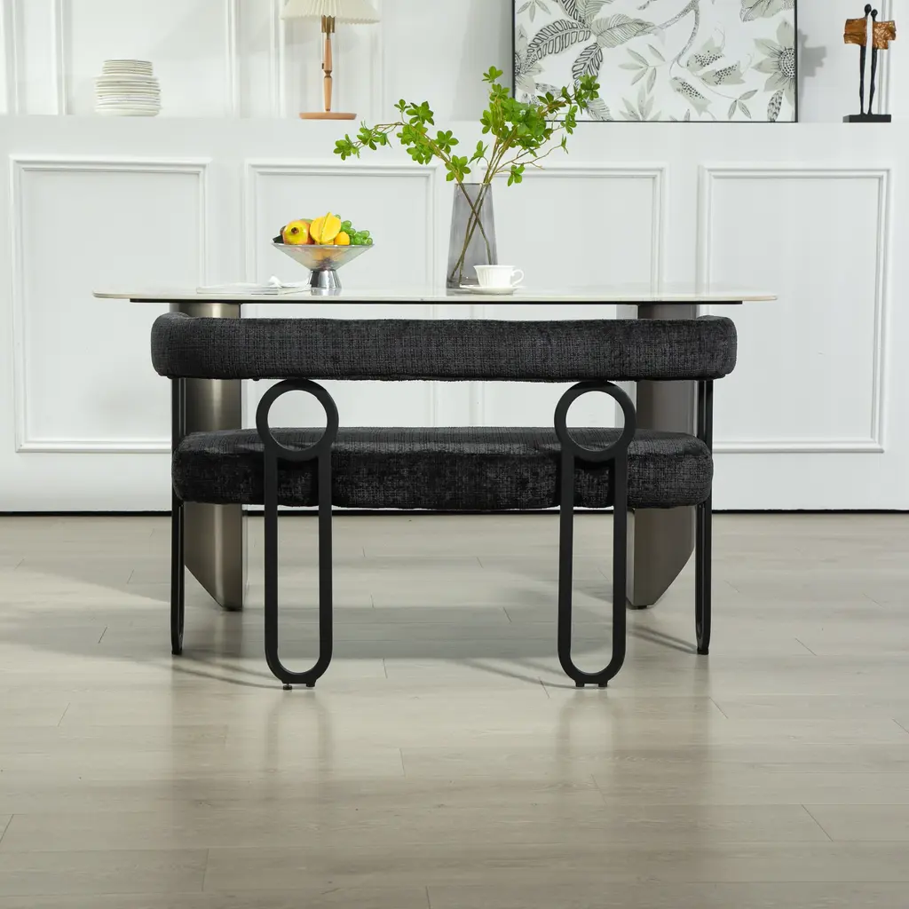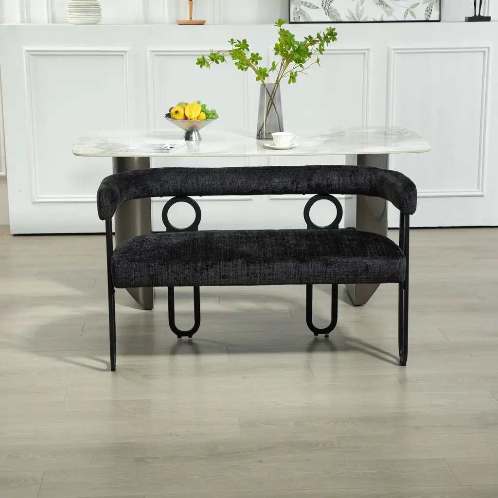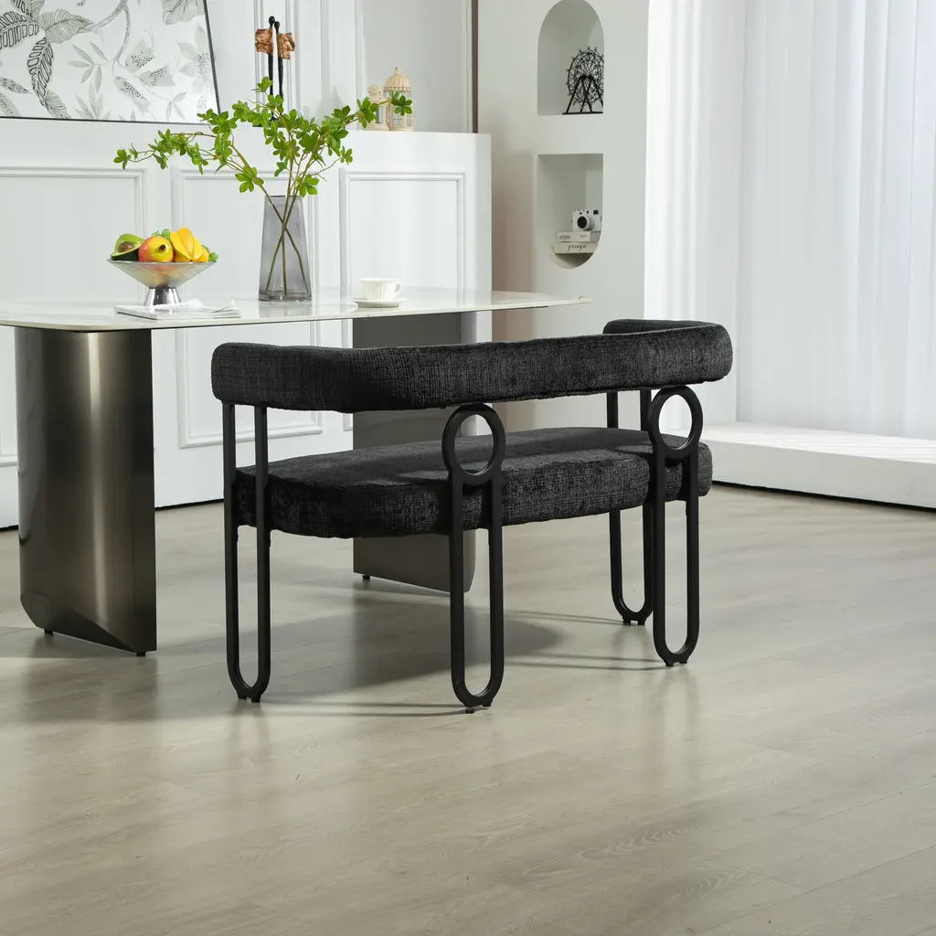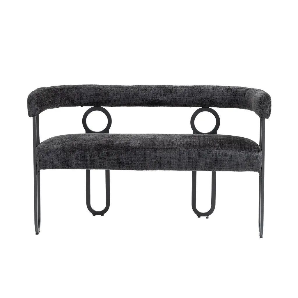 House Hold Modern Loveseat 2 Seater Sofa Chenille Fabric Couch With Arms And Metal Legs For Living Room - Black