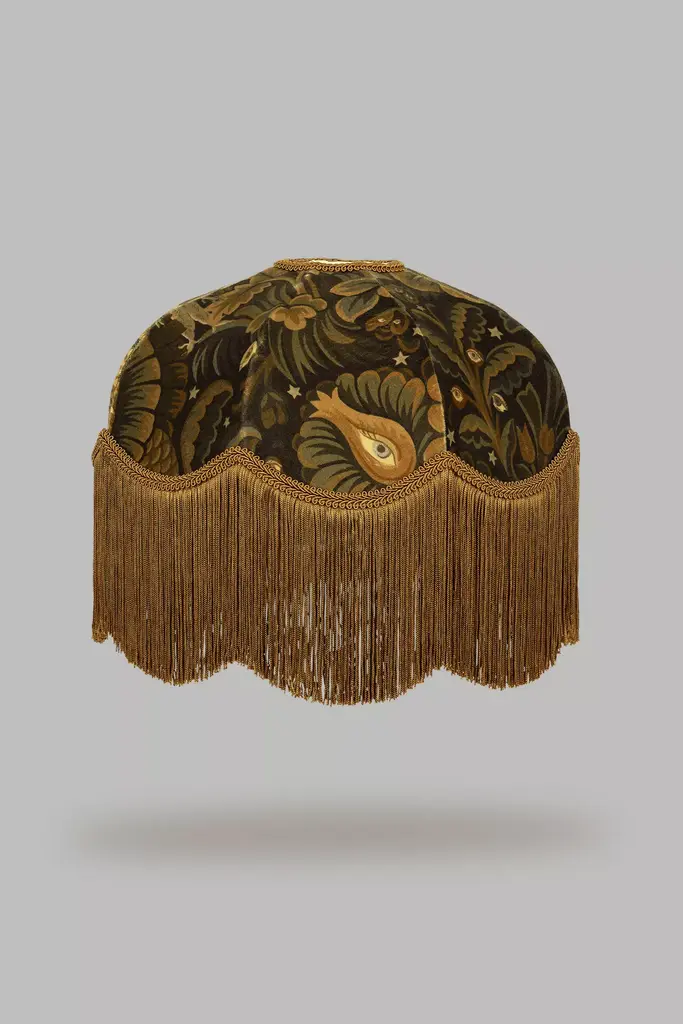 Combining the antique-inspired Mey Meh print with a traditional-style lampshade, House of Hackney have created a future heirloom you will want to pass down to the next generation. Handcrafted in Great Britain, this velvet design will bring sumptuous colour and texture to your home. Founded by Frieda Gormley and Javvy M Royle in 2011, House of Hackney is the British interiors brand renowned for ripping up the rule book and dreaming up iconic prints inspired by the world we live in. As design rebels with a cause, the House has spearheaded a renaissance for painterly prints and exquisite colour, while championing traditional craftsmanship and eco-friendly production.* Outer: 100% cotton* Brush with a velvet brush, lint roll to remove dust* Made in Wales, Great Britain #### *Dimensions** 14.7" diameter, 6.1"HThis lampshade and/or lamp base is uno fitting. Adapter not included. If you are interested in pairing with a harp and finial shade, an adapter can be purchased separately from the hardware store.