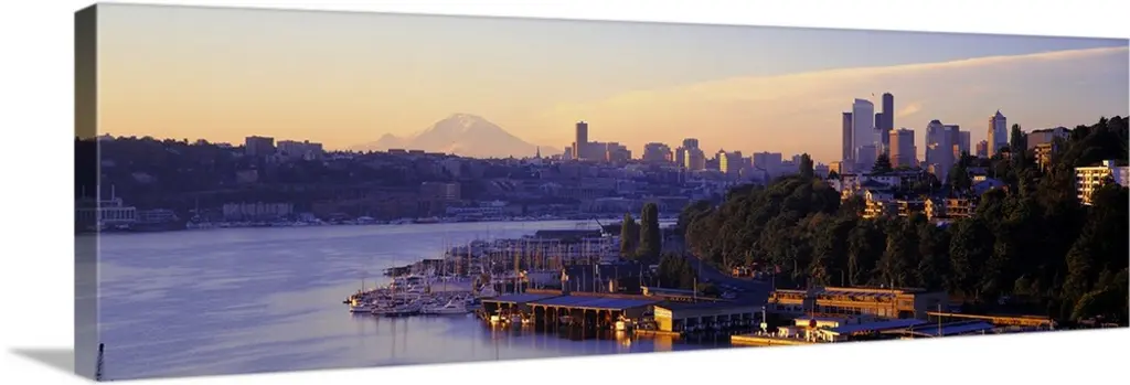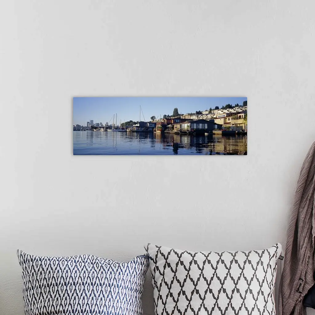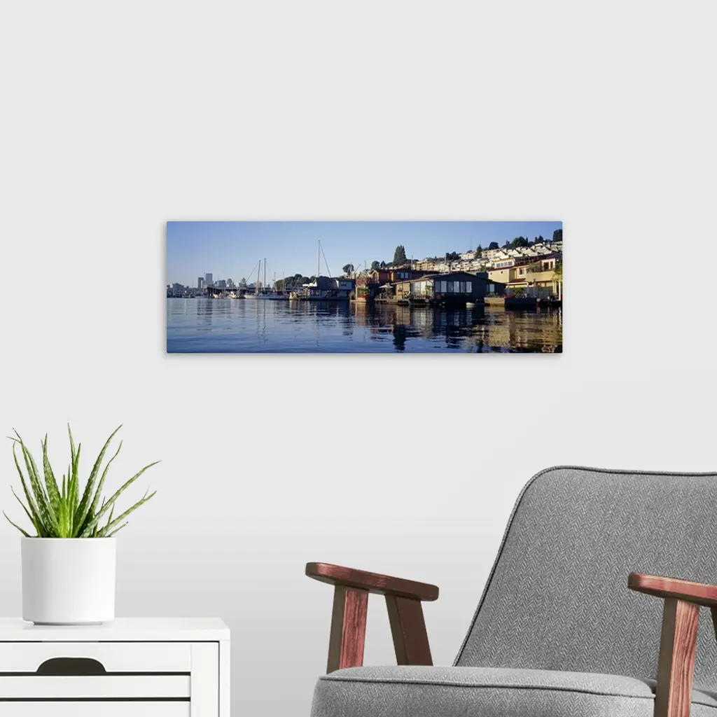 Houseboats in a lake, Lake Union, Seattle, King County, Washington State wall art for home and office decor. Discover canvas art prints, photos, mural, big canvas art and framed wall art in GreatBigCanvas.com's varied collections.