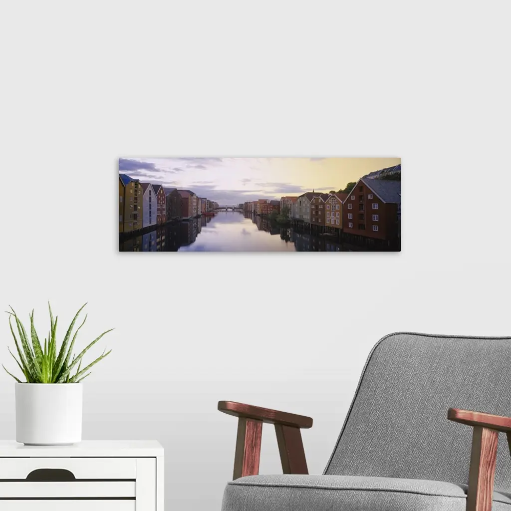 Houses on both sides of a river, Trondheim, Sor-Trondelag, Norway wall art for home and office decor. Discover canvas art prints, photos, mural, big canvas art and framed wall art in GreatBigCanvas.com's varied collections.