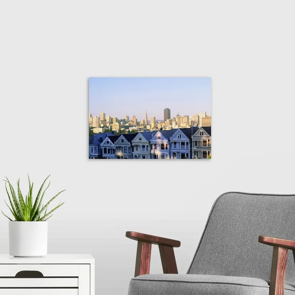 Houses With Skyline Cityscape Behind It, Alamo Square, San Francisco
