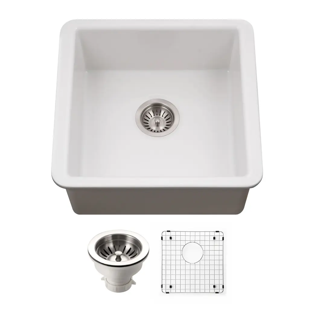Houzer Ptb-2020-C Platus 19-1/8" Undermount Single Basin Fireclay Bar - White