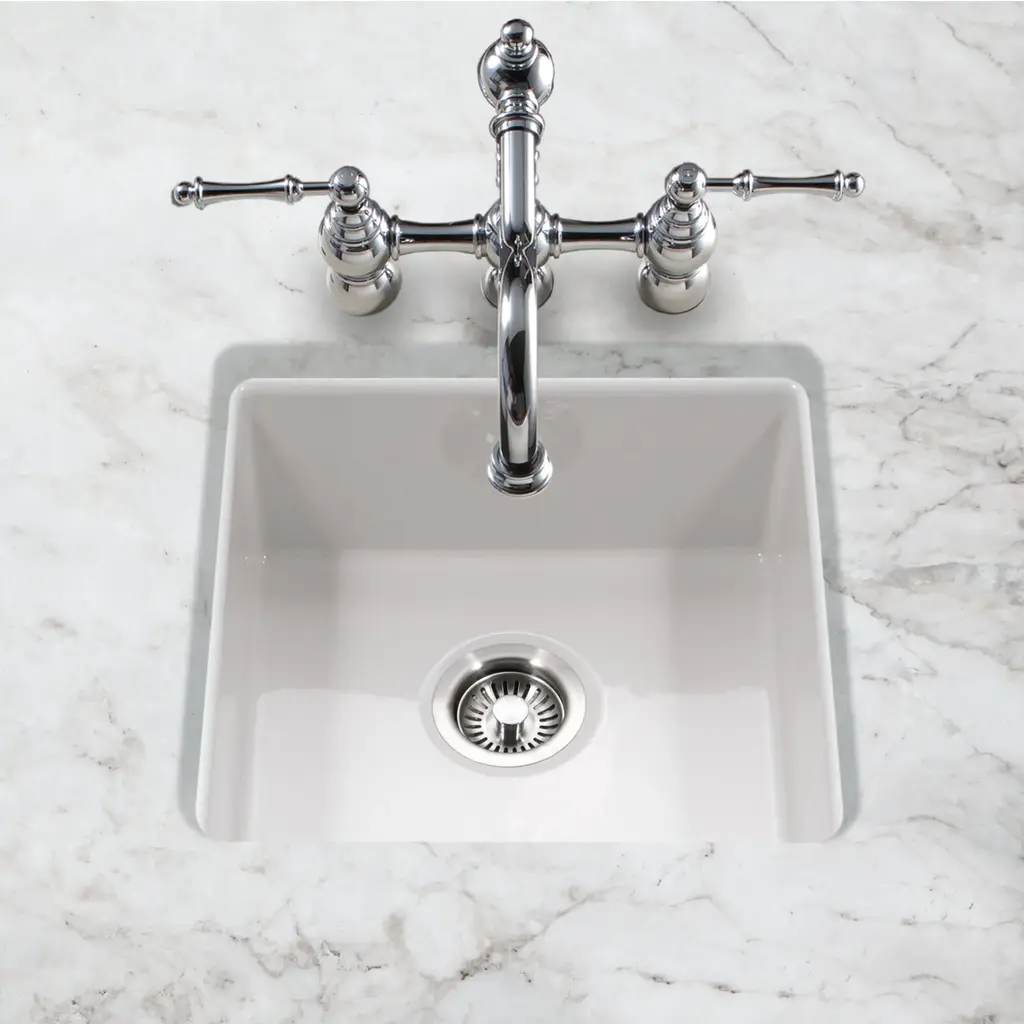Houzer Grace the heart of your home with the timeless classic of a Houzer fireclay kitchen sink. Fired for over 20 hours at 2200 degrees F, the surface is impervious to stains, scratches, and chips, backed by the confidence of Houzer's limited lifetime warranty. Houzer, a division of Hamat, combines the latest in cutting-edge technology using the most advanced injection molding techniques along with old-world hand craftsmanship. Houzer fireclay sinks are crafted with 70 years of experience in Houzer's ISO-certified factories in Turkey.Houzer PTB-2020 Features:Houzer PTB-2020 Specifications: