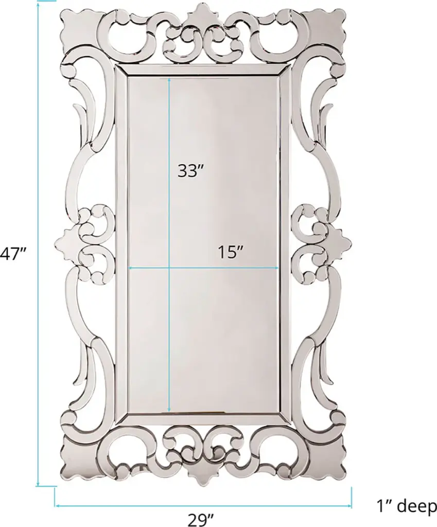 This ornate mirror features an open scroll work mirrored frameThe high-style design and high-end materials in the mirrors are what set Howard Elliott apart from the competition.Howard Elliott''s innovative product line is carefully designed and packaged to ensure low damage rates for their high quality and custom items.