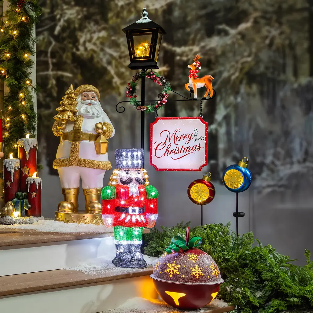 Elevate any garden or yard into a captivating outdoor gallery with this statue assortment. They feature adorable lamp posts with fun signs. Our statues help merge nature’s beauty with art to create a timeless and enchanting space. They light up and cast a soft glow during the night for an added touch of whimsy. These pieces are made from durable materials, so they’re outdoor safe and weather resistant. They make great gift for anyone who loves to turn their home into a winter wonderland. Requires two AA batteries, not included and has a 6 hours on/18 hours off timer function.