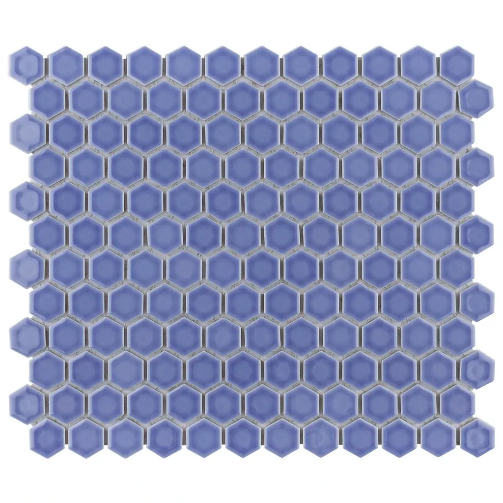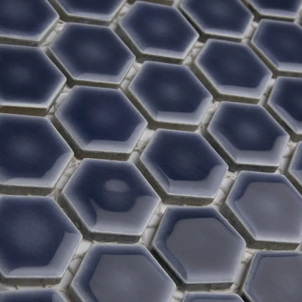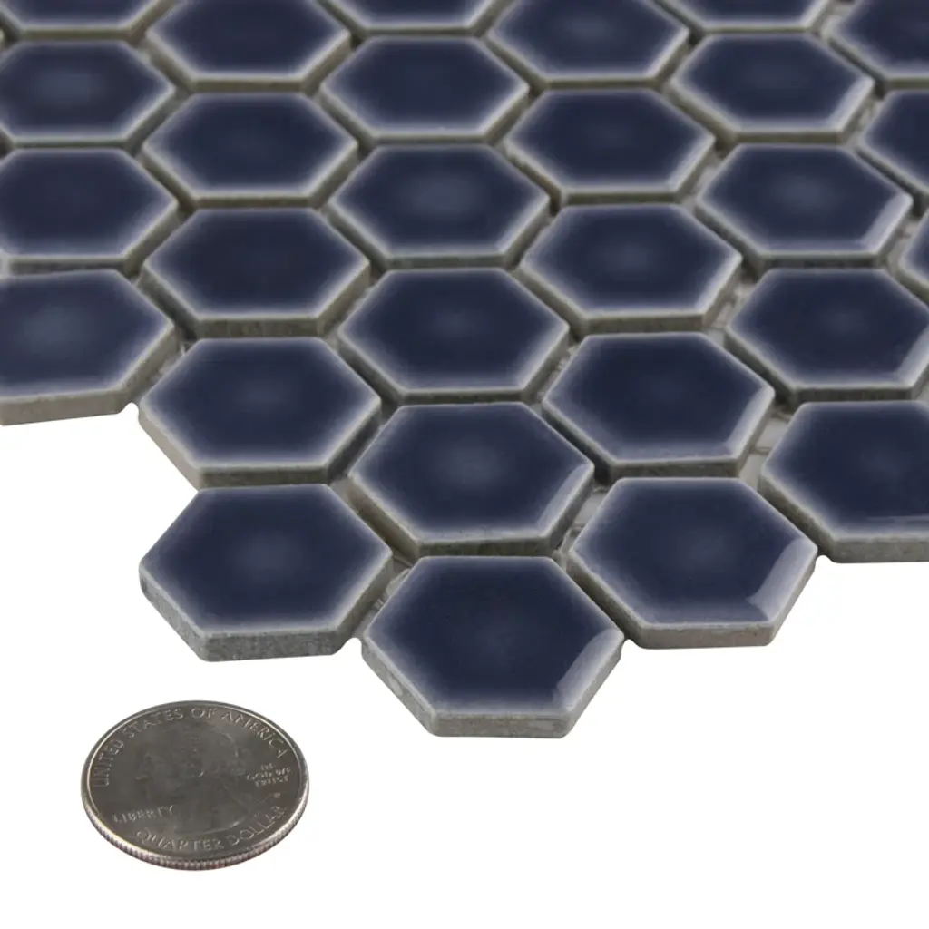 This porcelain floor and wall mosaic tile instantly elevate spaces through a refreshing dose of geometric design. With subtle variations in color tone that gradually fade around the border, each piece is truly unique. Its rich reactive glaze echoes light to dark hues with a high gloss finish that is unique yet simplistic enough to integrate into any design, ranging from traditional style renovations to modern home projects. Its impervious and frost resistant features make this hexagon mosaic an ideal choice for indoor and outdoor floor and wall installations including, kitchen backsplashes, bathroom showers, and accent walls. This porcelain mosaic floor and wall tile can be used as a whole sheet or cut into smaller strips as an accent piece.