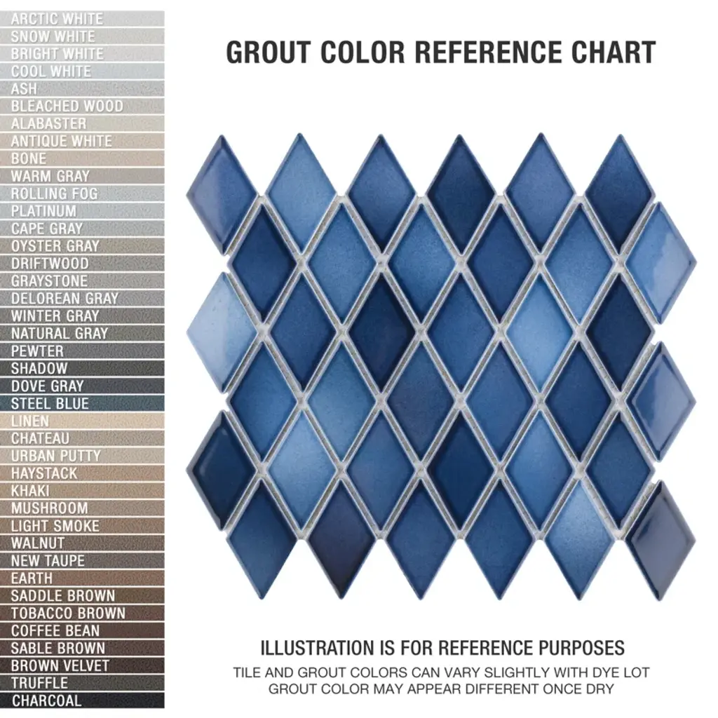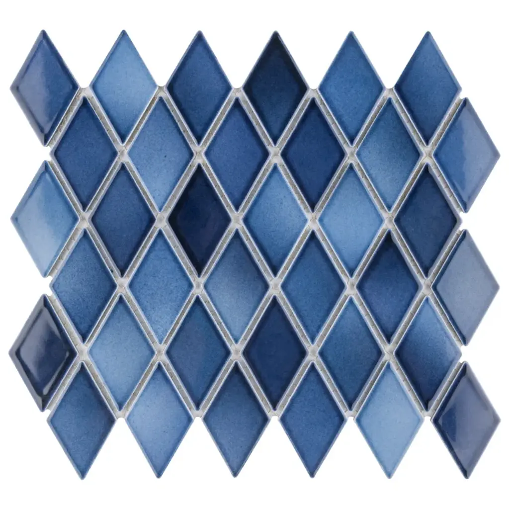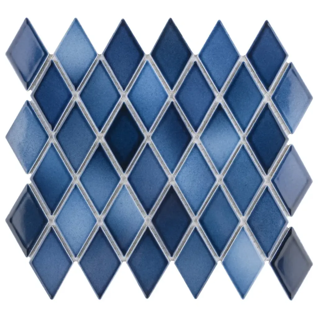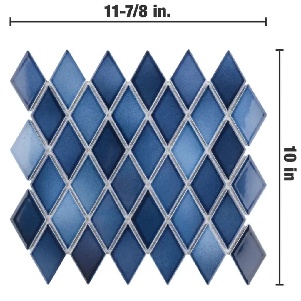 Our Hudson kite porcelain floor and wall mosaic tile instantly elevate spaces through a refreshing combination of geometric design and vivid color. Featuring a reactive glaze, these diamond-shaped tiles have soothing light and dark tones that blend with white around the edges. This floor and wall mosaic creates a unique sporadic design through a pleasing mixture of cool-toned tints with additional dimensions added by the smooth, high-gloss finish. Its impervious and frost-resistant features make this porcelain mosaic tile an ideal choice for residential indoor and outdoor installations including, kitchens, backsplashes, bathrooms, showers, and fireplace facades. Please note that although we strive to ensure the accuracy of our product content, the reactive glazing creates a stunning one-of-a-kind look which may result in noticeable color variation between different dye lots. Tile is the better choice for your space. This tile is made from natural ingredients, making it a healthy choice as it is free from allergens, VOCs, formaldehyde, and PVC.
