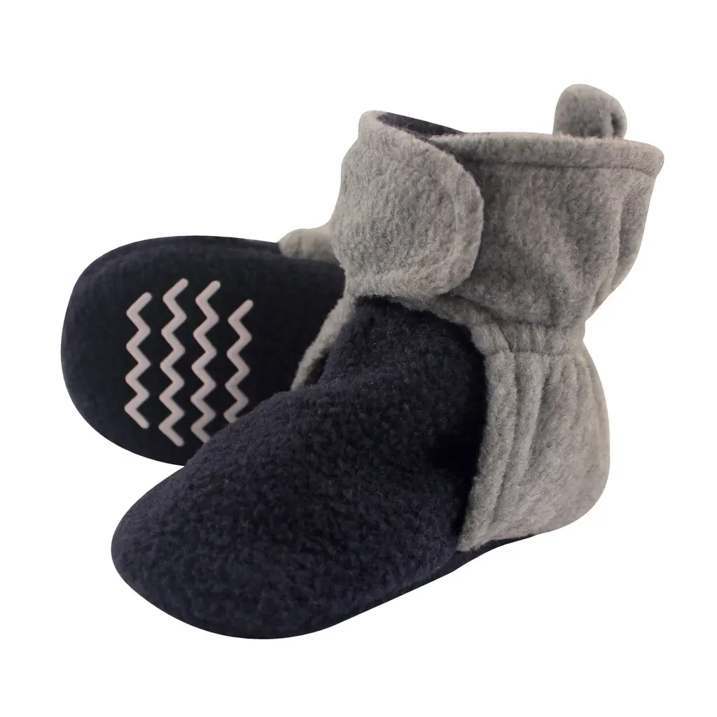 Hudson Baby fleece booties are comfortable, cozy baby booties made with fleece material that will keep your little one's feet warm and comfortable. Our booties wrap around your baby's foot and fasten in the front with a velcro closure, so they are easy to put on, fasten and stay on. Our fleece booties feature non-skid soles to prevent your baby from slipping and falling when they start to walk and run. Hudson Baby Unisex Baby and Toddler Cozy Fleece Booties, Brown is a great baby essentials set for your little one.