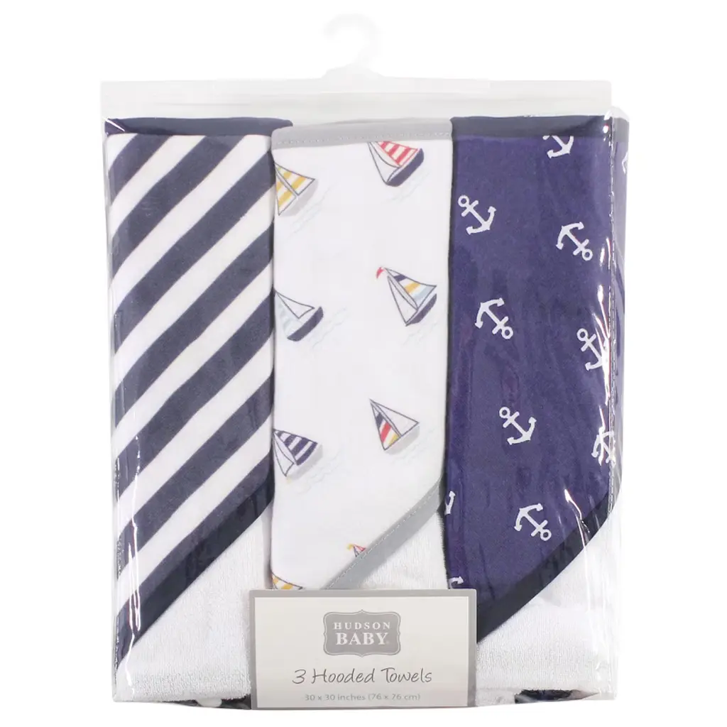 Hudson Baby Infant Boys Cotton Rich Hooded Towels, Captain, One Size