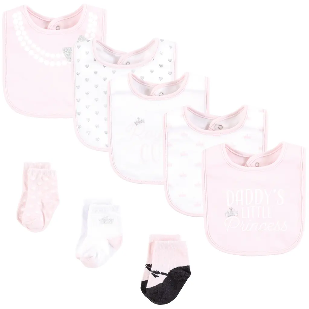 Hudson Baby bibs and headband set are an adorable accessory set for fashionable matching bibs and headbands and a great baby shower gift. Each set features three bibs and two headbands with coordinating fun, stylish prints. Our accessory set is a great baby shower gift.