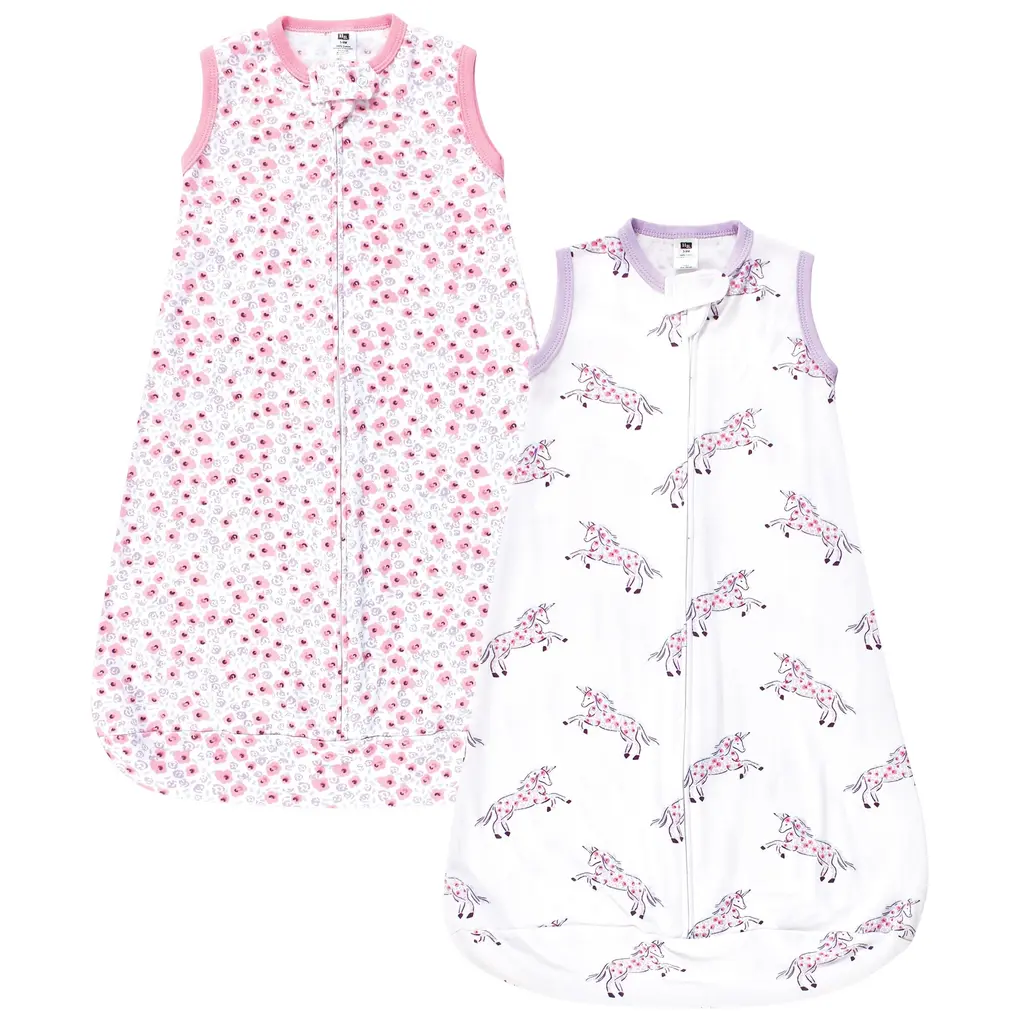 Hudson Baby Infant Girl Interlock Cotton Sleeveless Sleeping Bag, Soft Pink Roses - 3-9 Months - Soft Pink Roses
