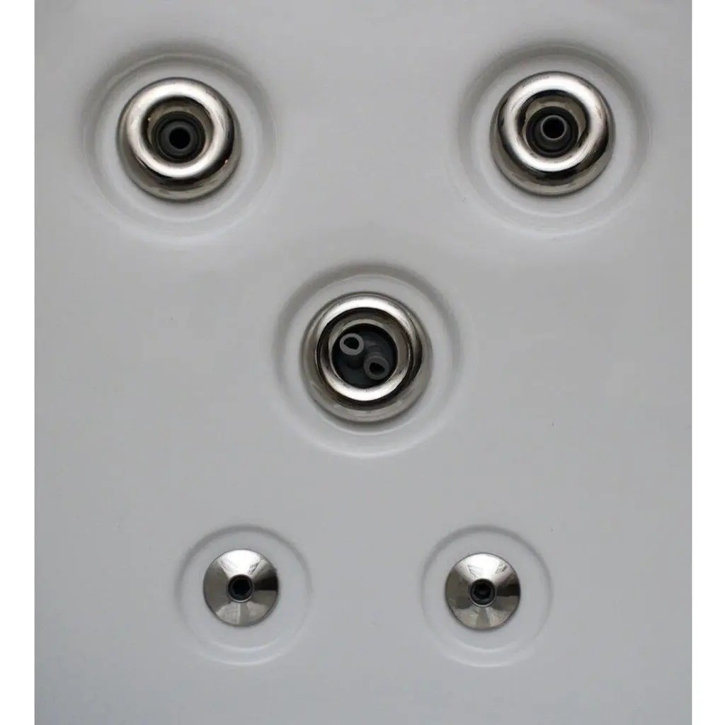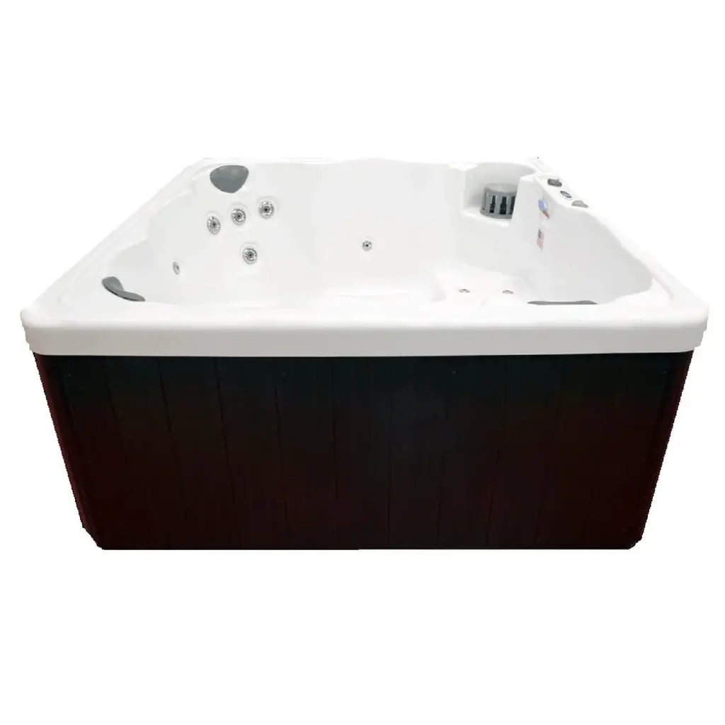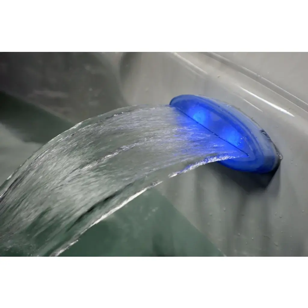 Relax and rejuvenate with your loved ones in this Hudson Bay Spas 6-person hot tub. With 19 stainless steel jets, this hot tub targets your body's pressure points to ensure the optimal circulation of water for a soothing experience. Made with durable, slip-resistant lucite acrylic and anti-fungicide tubing, this hot tub offers safety and hygiene. Enjoy energy-efficient performance with the energy rite pump and low energy consumption. The white shell with mocha cabinets, 7-color underwater LED lights, built-in waterfall, and digital controls create a luxurious ambiance.Features:Dimensions:Warranty Info: