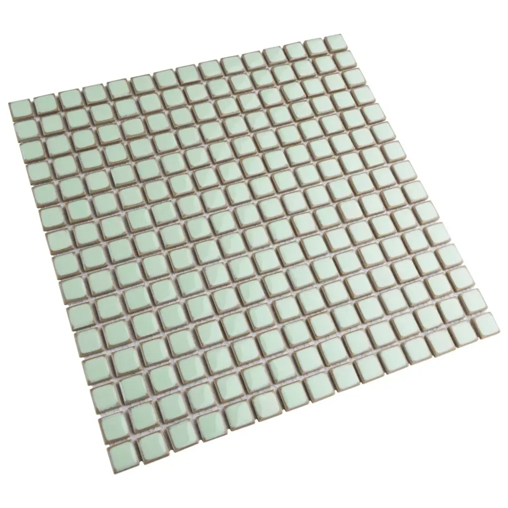 Porcelain Mosaic Tile offers a beautifully tranquil update on the timeless square design. This tile features varying tones in the blend around the edge. The end effect is a pleasing mixture of tints with additional dimensions added by the high-gloss finish. Impervious, frost-resistant, and easy to clean, this tile is a perfect choice on its own or coordinated with other colors in our series.