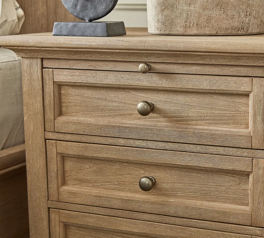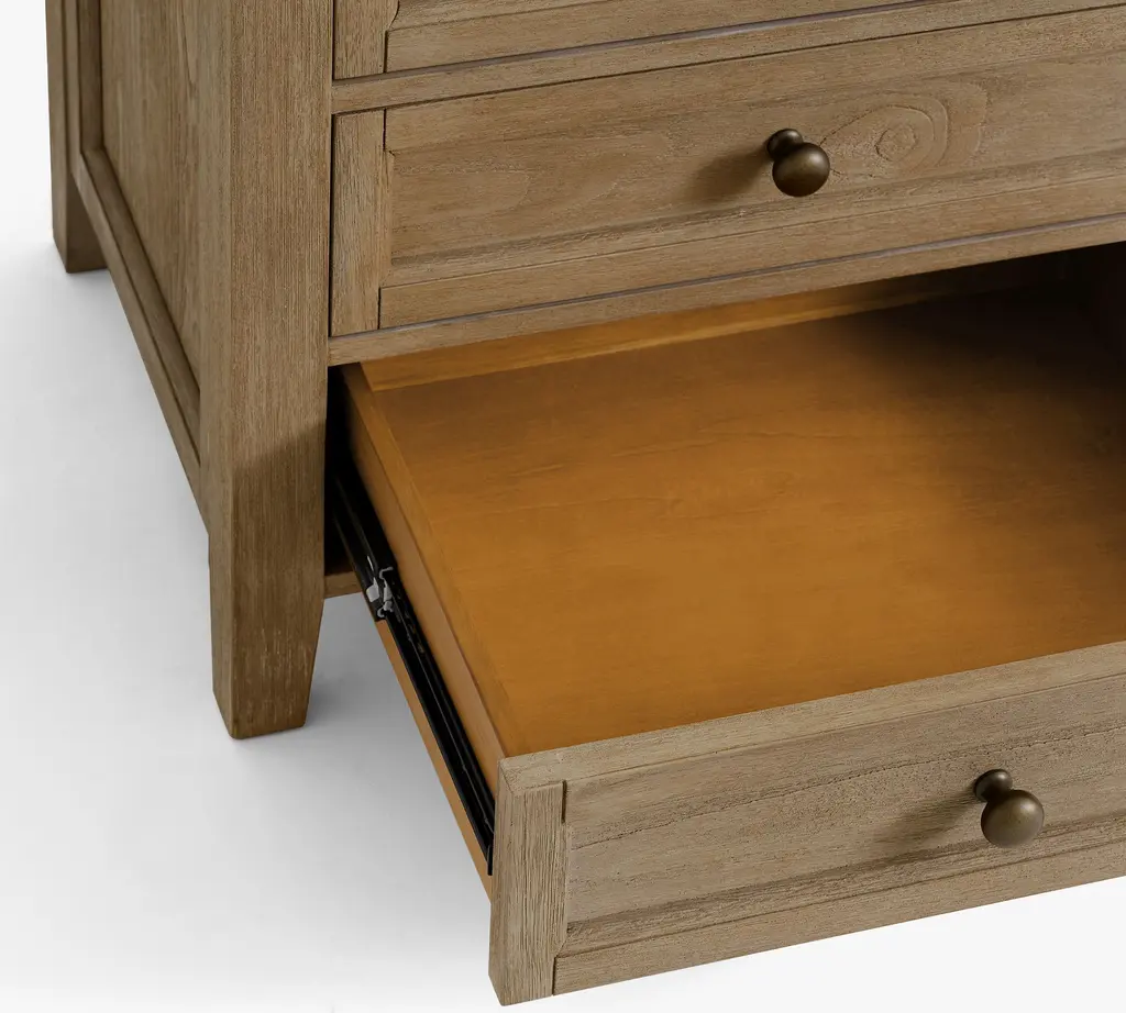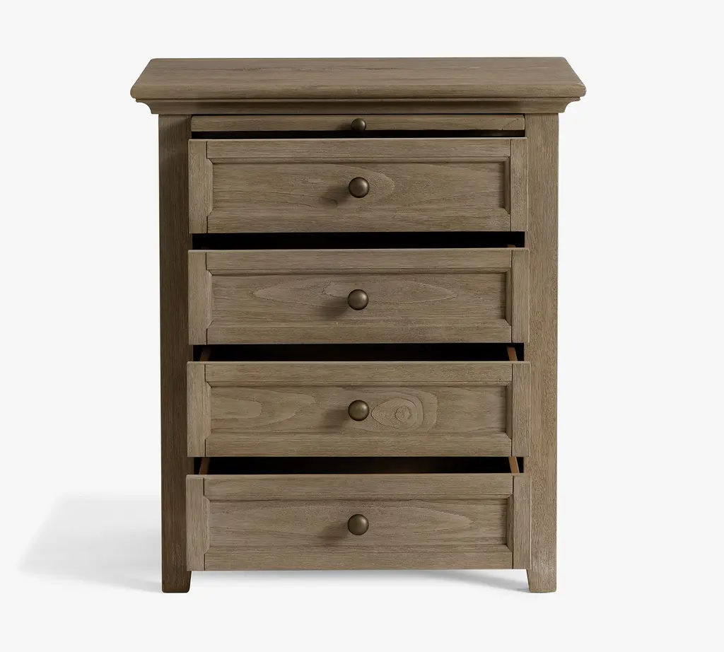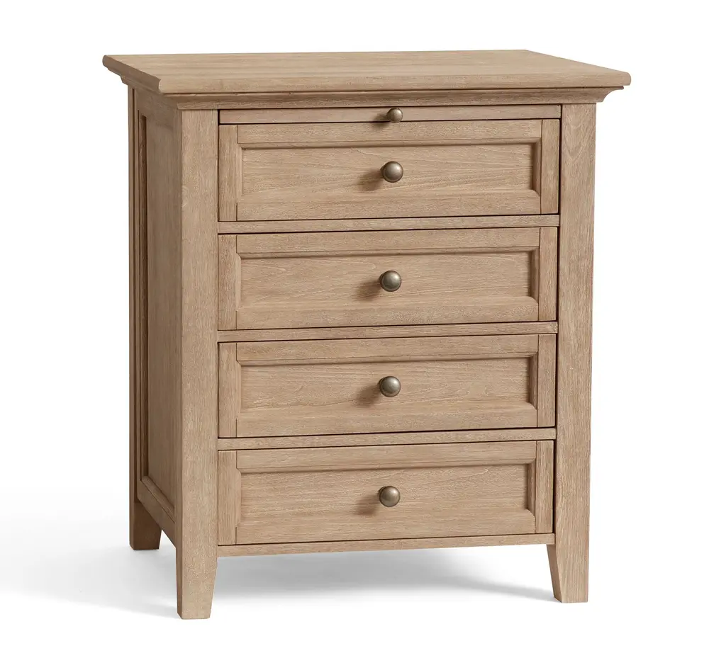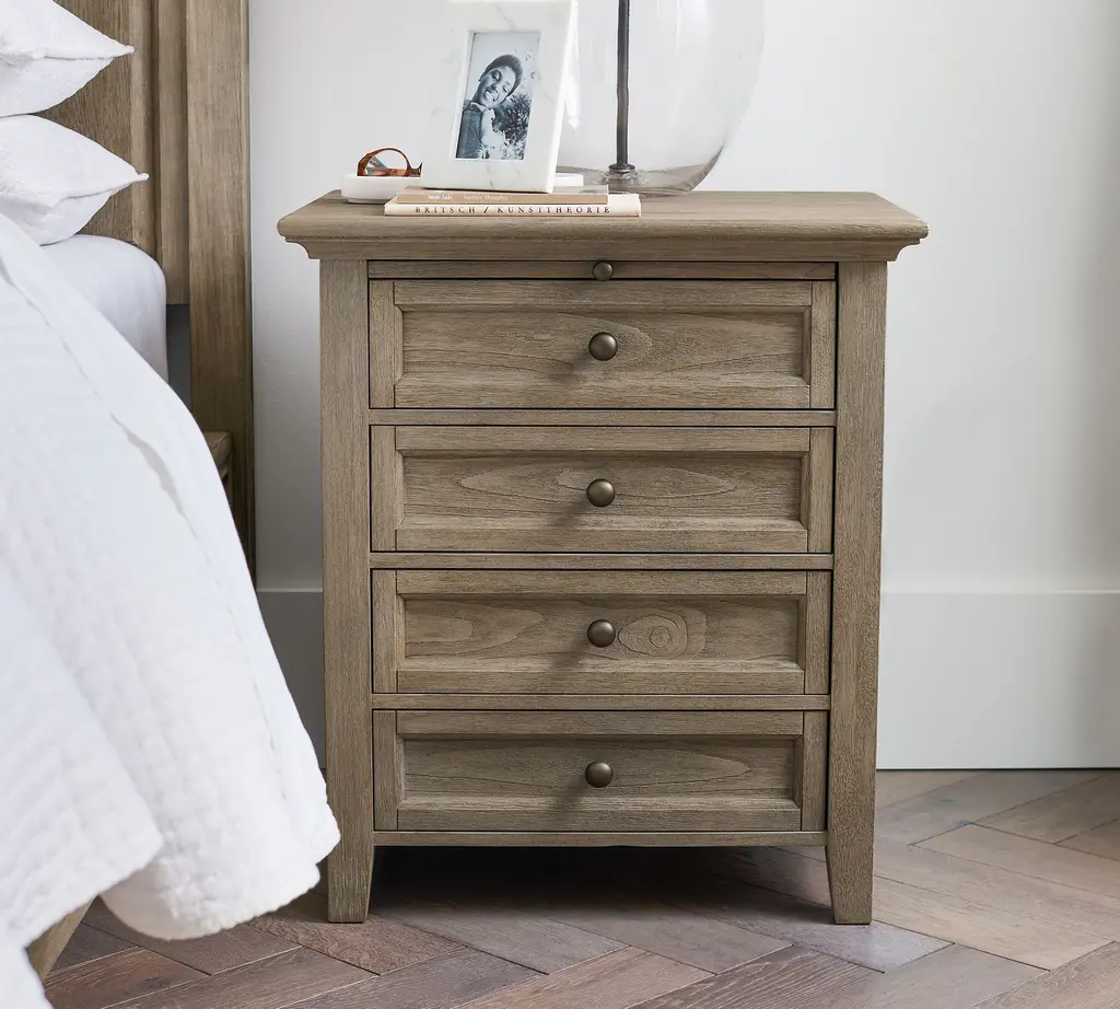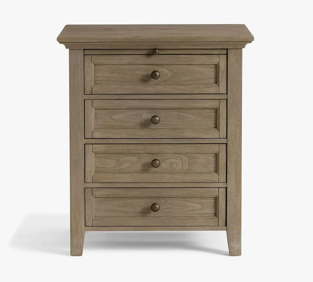 Masterfully crafted from solid mahogany and veneers, the Hudson 4-Drawer Nightstand features dovetailed drawers for lasting form and function.