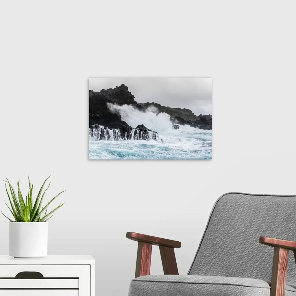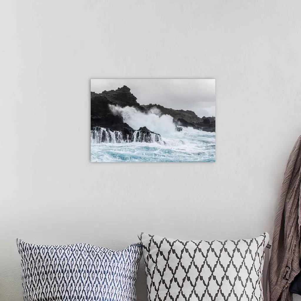 Huge surf at the Olivine Pools on the northwest coast of West Maui, Hawaii, USA wall art for home and office decor. Discover canvas art prints, photos, mural, big canvas art and framed wall art in GreatBigCanvas.com's varied collections.