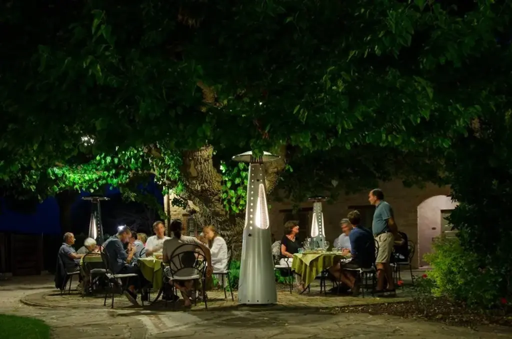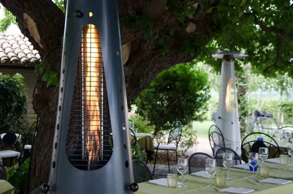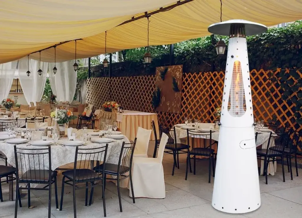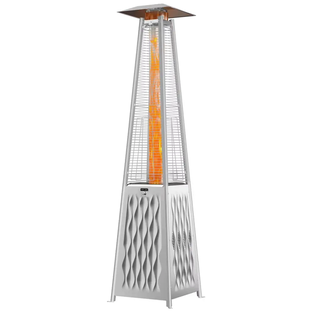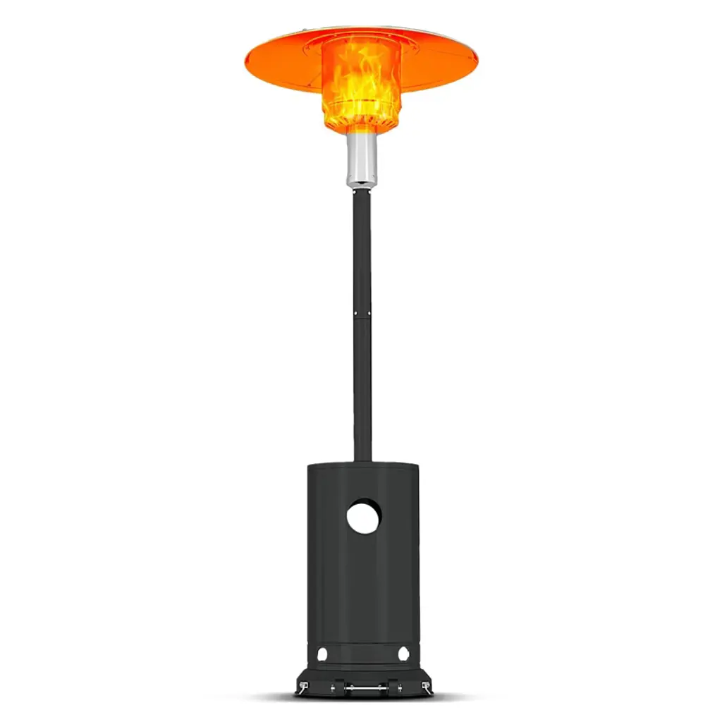 Hugfire Lite is a movable outdoor heating stove, in painted steel, modern and design for dehors. Suitable for outdoor environments, contract use and particularly suitable for the HO.RE.CA channel.Features:- Caloric power: 11 kw- Consumption: 800 g / h- Heated area: 20 sqm- Fuel LPG (G30 / G31)- EC approval: EU Regulation 2016/426 and UNI EN 14543: 2017- Colors: Anthracite, FogHugfire is the outdoor heater to make a meeting of friends or customers a cosy, warm and shiny place in squares, courtyards and dehors interiors. The two-piece, easy-assembly steel body hides the LPG tank in its lower section, whereas the upper part whirls around itself hugging the flame so as to make it visible from every angle. A towering flame is hosted inside the pyrolytic glass tube, whose safety is ensured by protection grilles and dedicated, certified technological devices. Two elegant colours allow Hugfire to soberly fit in any setting, creating a wealthy mood that enlightens and warms conviviality, hospitality and sharing times.ConceptThe original idea was that of a mannequin whose open dress - a mere steel cone hugging and protecting the flame - featured a big aluminium hat refracting heat downwards for all the people around to cherish, be they standing or sitting on stools. A heater with a long dress almost brushing against the ground, giving a glimpse of its sturdy wheels for an easy use and handling. The cone-shaped silhouette is designed to house the fuel tank, leaving the flame in plain sight for everyone to enjoy light and warmth.Details:- The wide lower compartment, which can be accessed through a handy hatch, is designed to contain LPG tanks up to a 20 kg capacity while giving shelter to the burner body. - Protection grilles, coming with the same colour of heater’s body, provide for maximum safety degree and can be removed for maintenance routine. - The base built-in wheels and the knobs to be used as gripping points allow for easy handling by slightly tilting the heater. - The aluminium hat reflects the heat released by the flame downwards, thus creating optimum comfort in every environment.