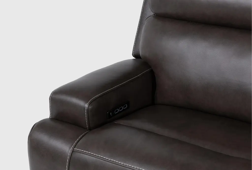 Hugo Brown Leather Left Arm Facing Power Zero Gravity Recliner With Power Headrest, Power Lumbar & Usb