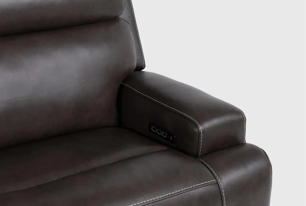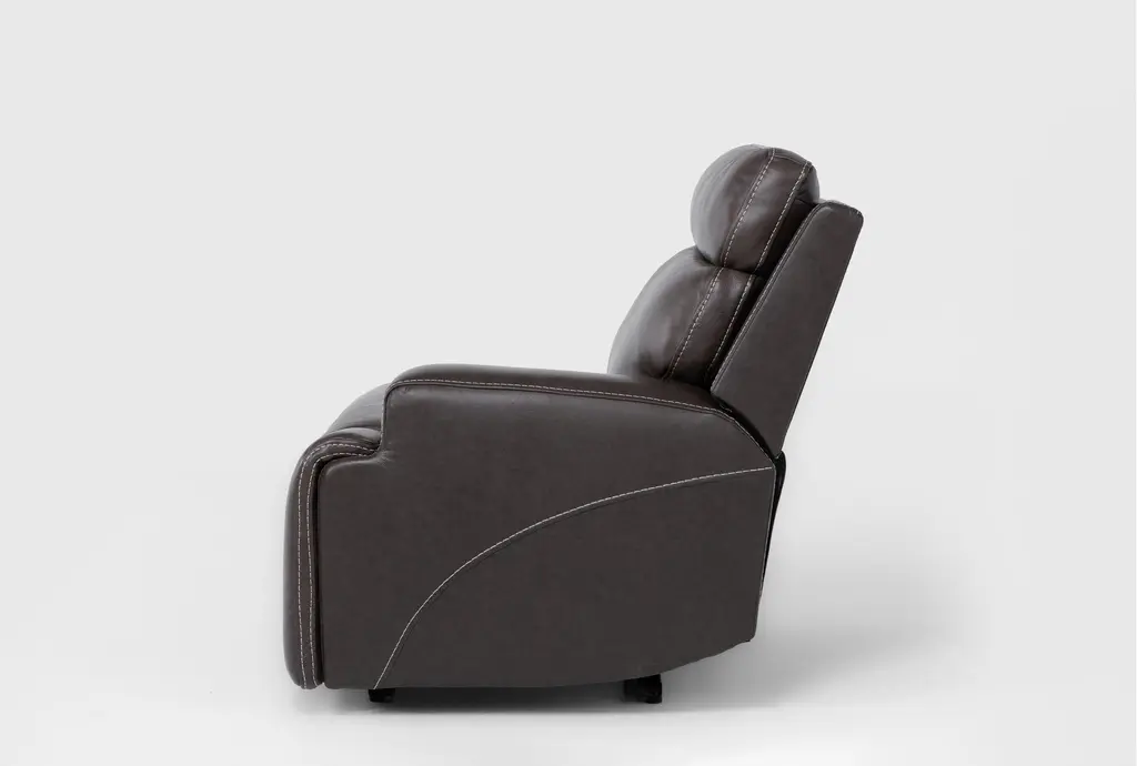 Hugo Brown Leather Right Arm Facing Power Zero Gravity Recliner With Power Headrest, Power Lumbar & Usb