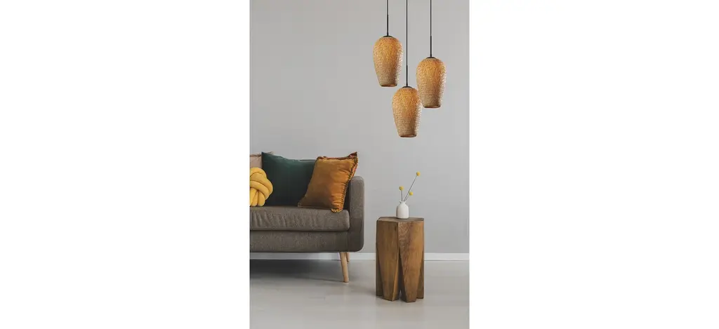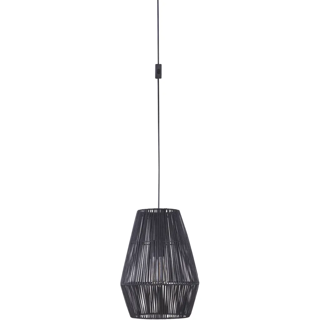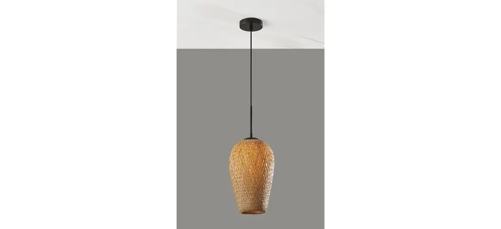 Bring beach-bungalow ambiance and a warm glow to your home with the Hugo pendant light. Designed in an inverted tulip shape and an open-weave 15" tall natural bamboo shade, this pendant light creates a relaxed and natural focal point to any kitchen, dining room, kitchen bar, or bedroom. Hang it by itself or pair it with several more to create a striking effect and add illumination to your space. The light features a round 4.75" diameter metal canopy in black finish. With a 6' black cord, the height of the lamp can be adjusted to suit the needs of any room regardless of the ceiling height.