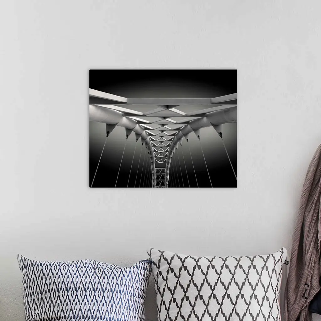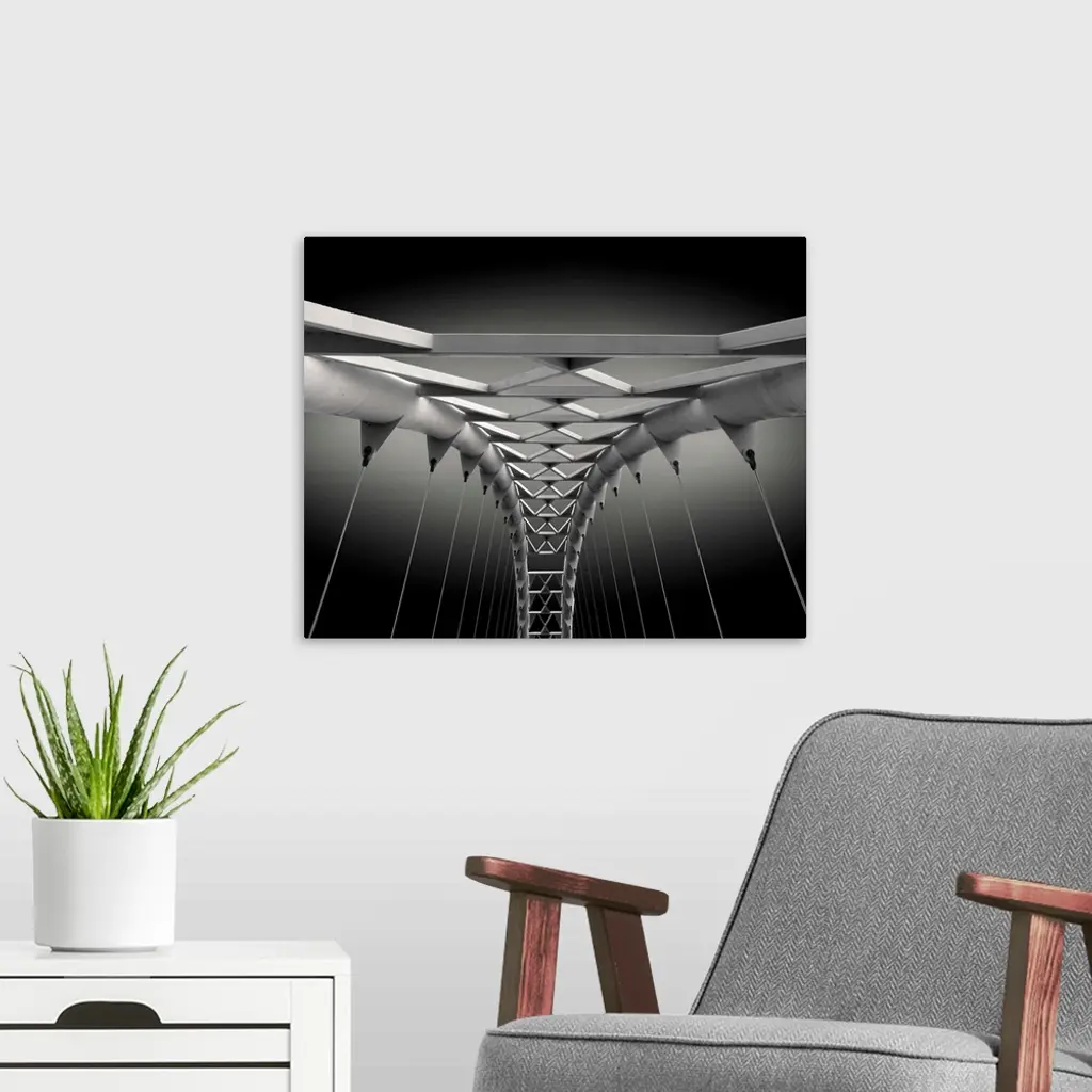 Arches and suspension cables of the Humber Bay Arch Bridge, Toronto, Canada.