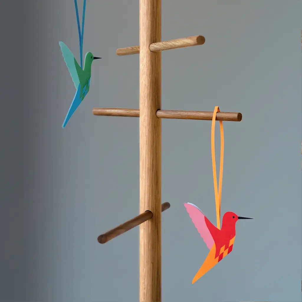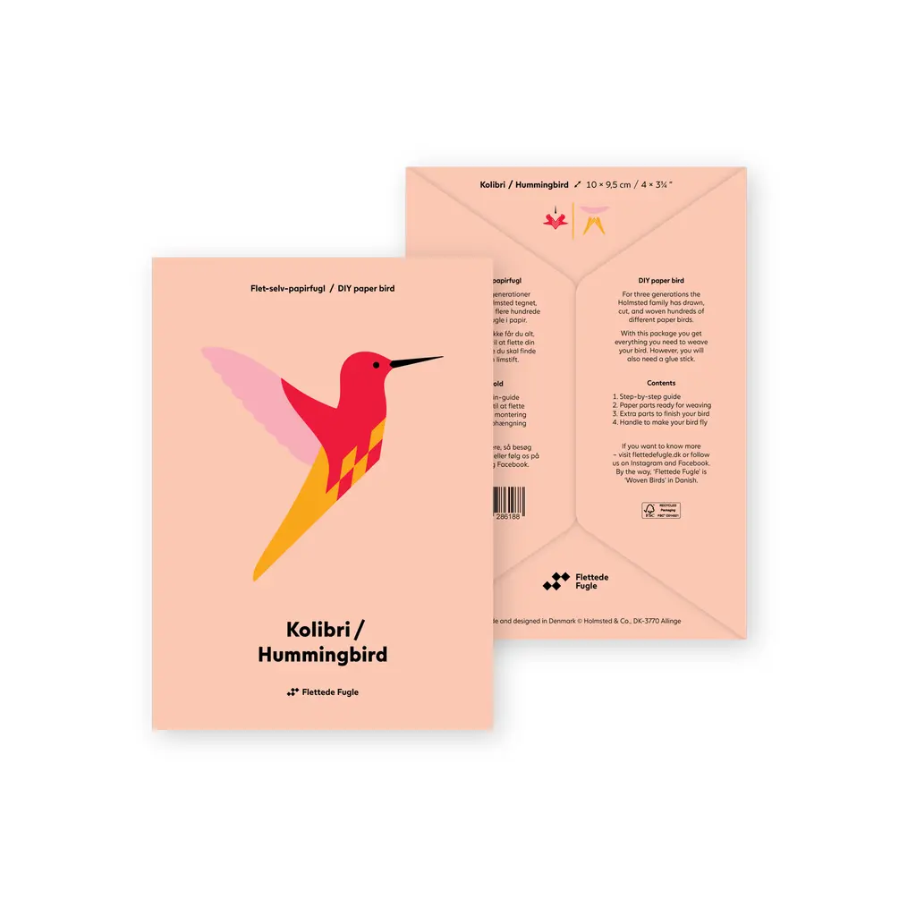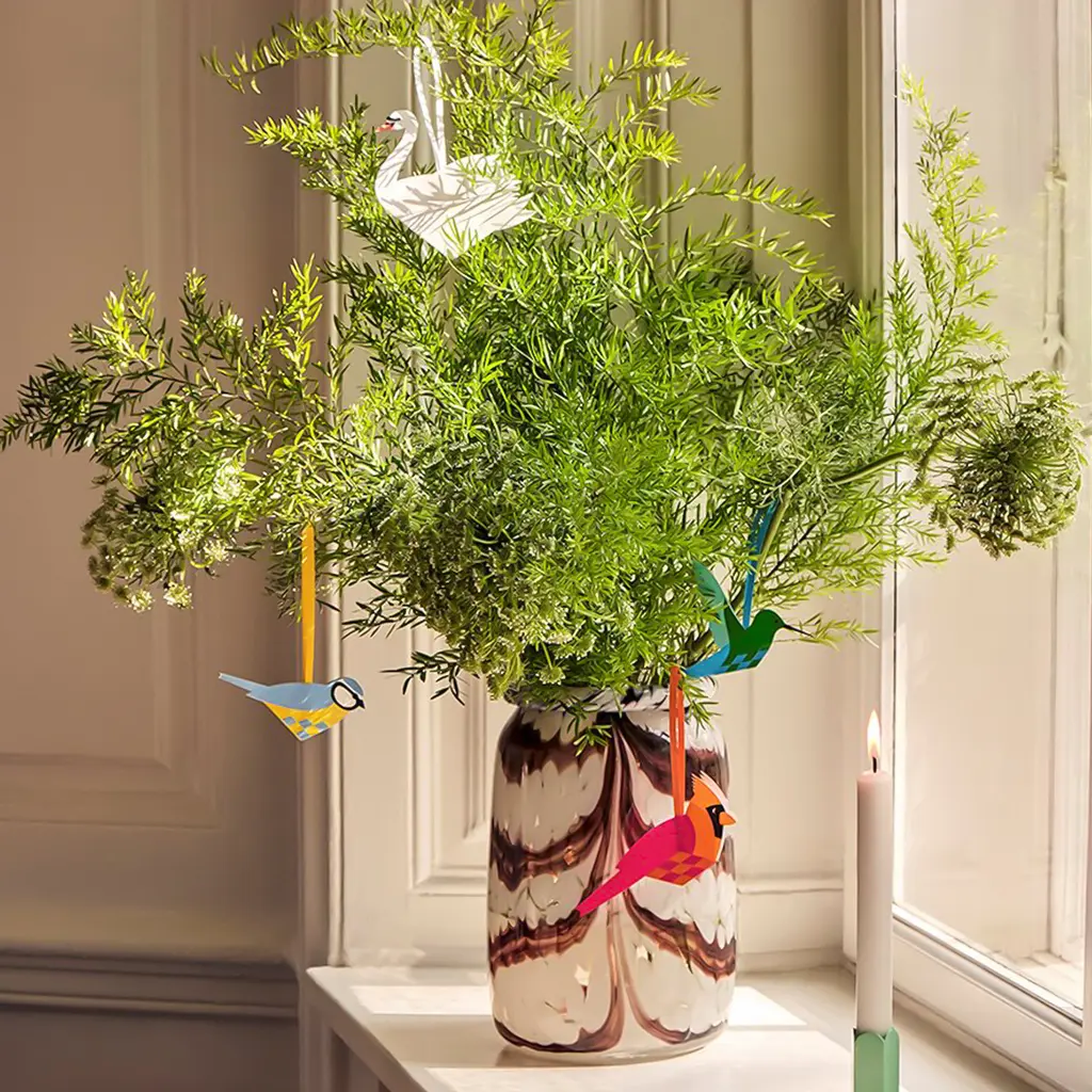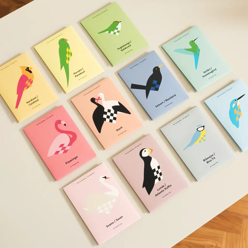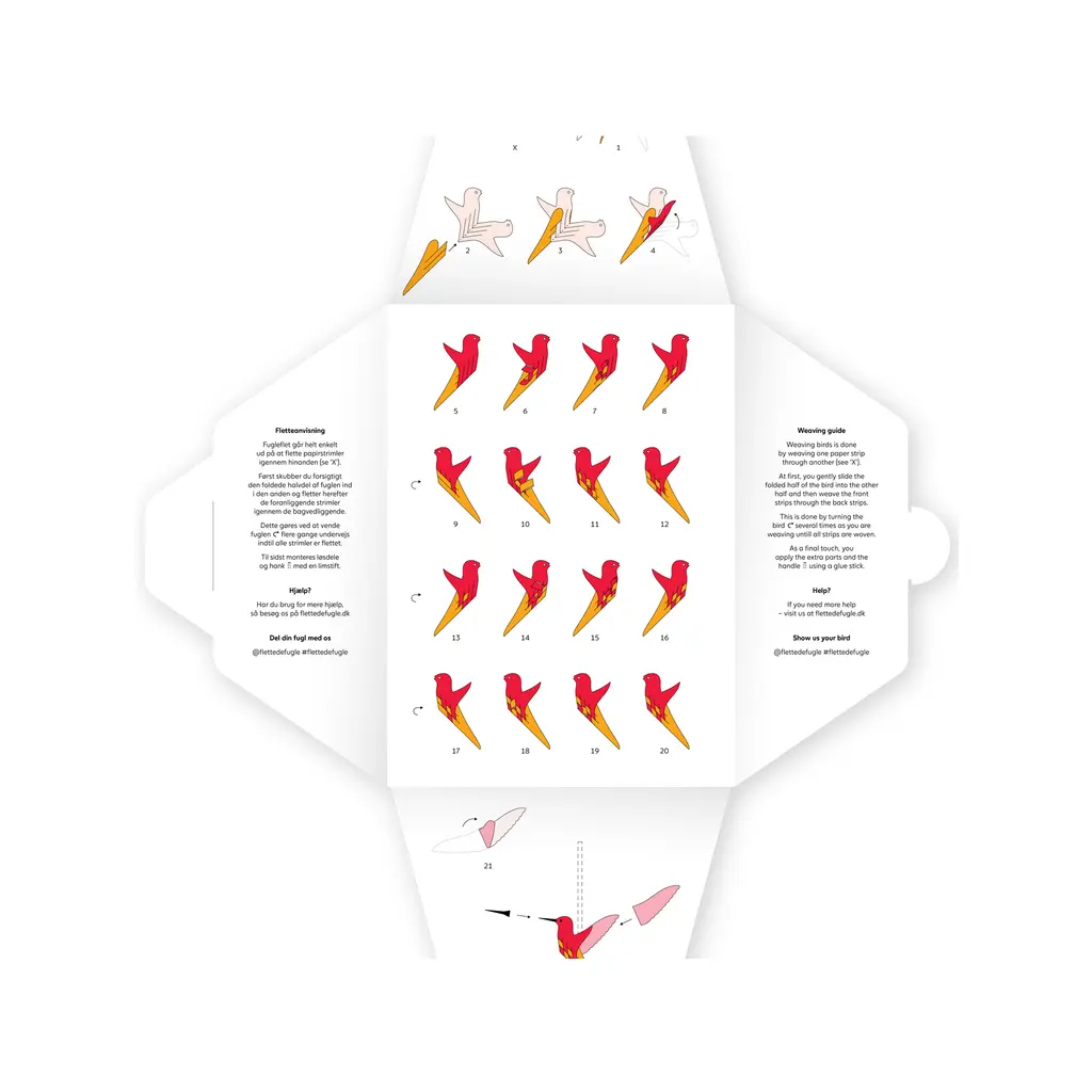 A series of woven paper birds, created by a family tradition spanning three generations. Originally created by Danish architect Henning Holmsted in 1960, the concept for the Flettede Fugle bird has evolved over time to include a huge range of species. This DIY kit includes everything you need to bring your own woven bird to life. Apart from step-by-step instructions and separate paper parts, the box also includes extra components for the finishing touches and a handle that moves the bird’s wings, making it fly. The handmade paper parts are all made from glossy paper and will vary in color and finish. Choose your favorite design(s) from a comprehensive series that comprises birds from around the world, in vibrant or neutral colors.