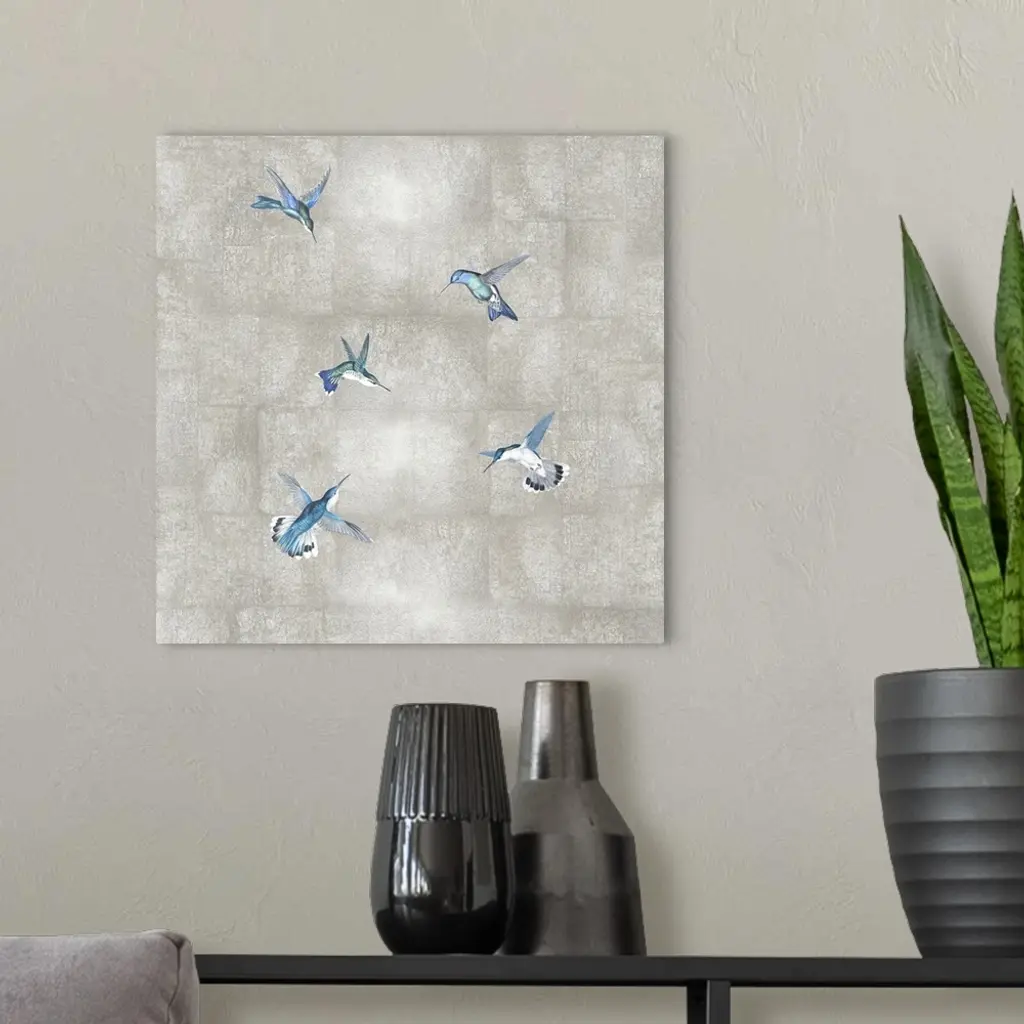 Hummingbirds Blue On Silver II wall art for home and office decor. Discover canvas art prints, photos, mural, big canvas art and framed wall art in GreatBigCanvas.com's varied collections.