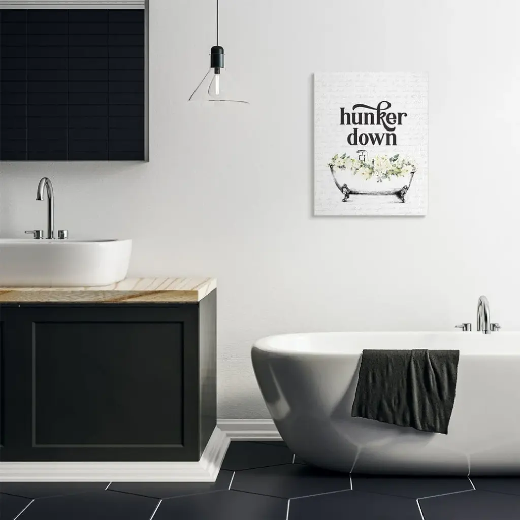 Hunker Down Quote Floral Bathroom Tub Relaxation,1pc, Each 24 X 30