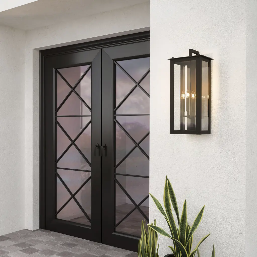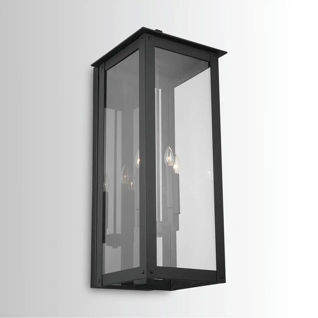 Clean and contemporary, the Hunt 4-Light Wall Lantern takes a modern approach to traditional lanterns. The Black and Oiled Bronze finish options accent the striking frame and make a statement in any outdoor space. These fixtures are part of our Rain or Shine Collection and are backed by our five-year warranty.