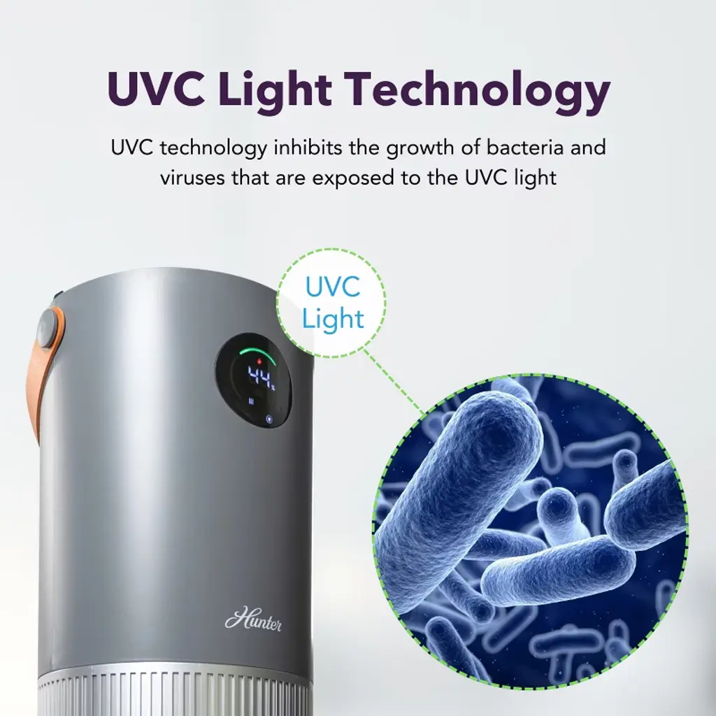Hunter Fan Company Hph625 Air Purifier And 1.1 Gal Evaporative Humidifier– 2 In 1 Air Purifier & Humidifier Combo, Grey/ Silver
