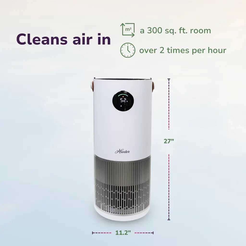 Hunter Fan Company Hph625 Air Purifier And 1.1 Gal Evaporative Humidifier – 2 In 1 Air Purifier & Humidifier Combo, White/ Silver